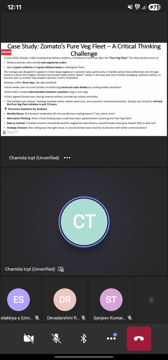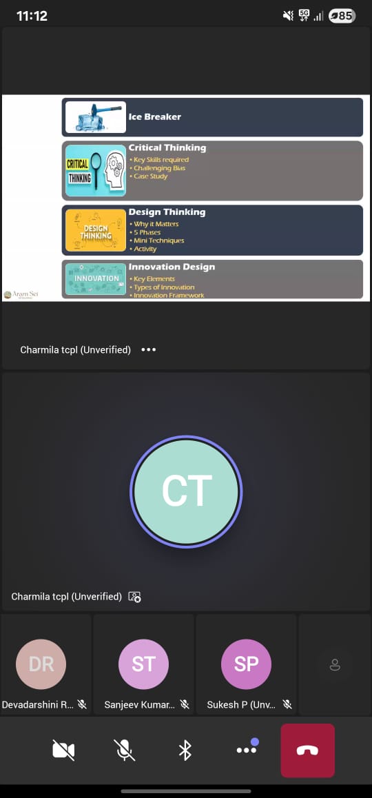 The Department of Management Studies, Paavai Engineering College (Autonomous), organized a webinar titled “Design Thinking, Critical Thinking, and Innovation Design” on 30th August 2025, from 11:00 a.m. to 12:30 p.m. in virtual mode.