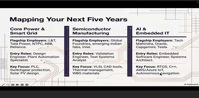 During the session, the speaker explained the importance of strengthening core technical knowledge along with developing programming skills, communication ability, problem-solving skills, adaptability, and industry certifications. He highlighted career opportunities in areas such as power systems, renewable energy, automation, electric vehicles, embedded systems, software development, cloud computing, data analytics, customer success, and enterprise solutions.He also emphasized the significance of internships, projects, resume building, aptitude preparation, interview skills, and professional networking for improving employability. The speaker motivated students to explore both core and IT domains, while also preparing for higher studies and global career opportunities.