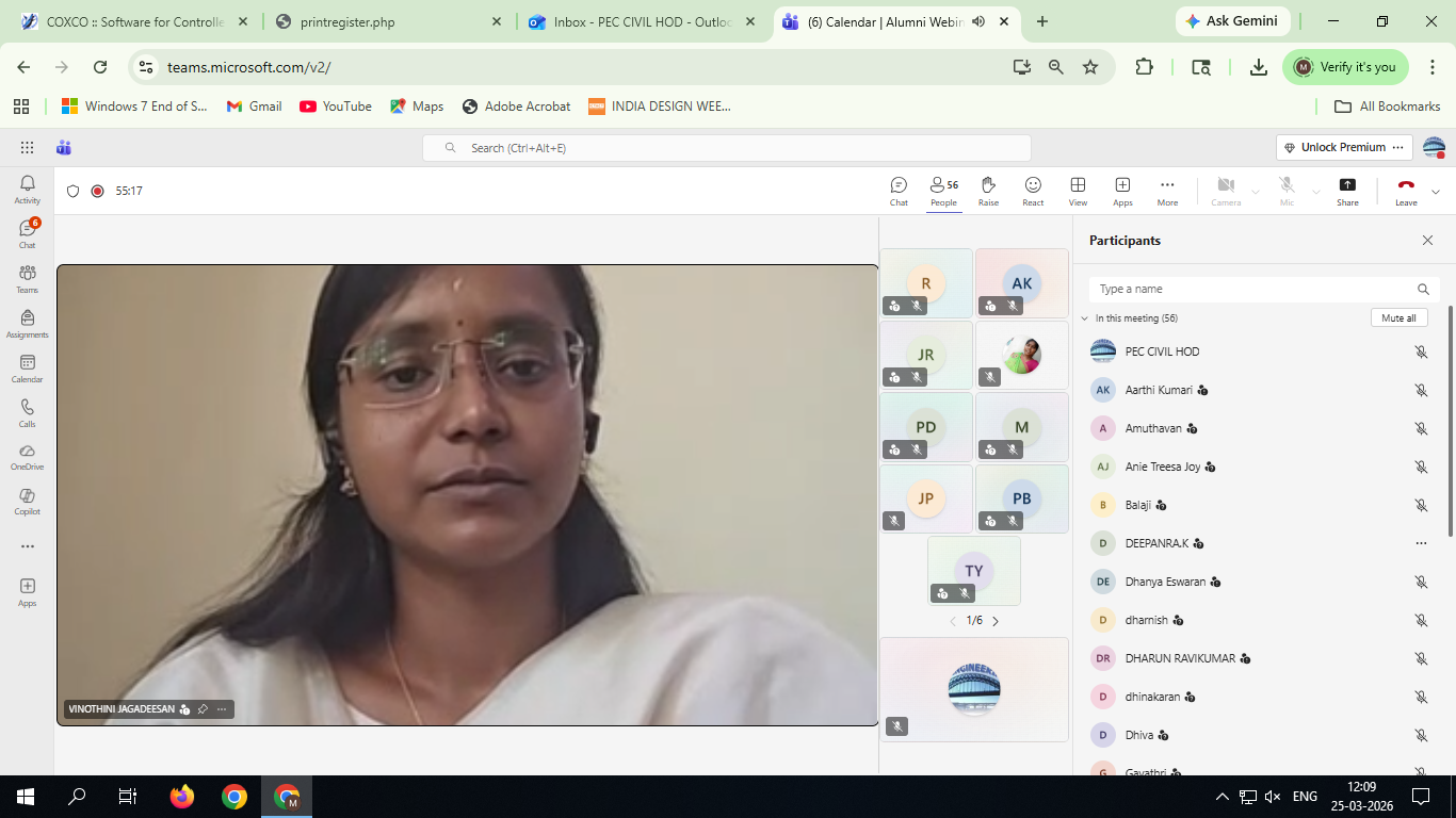 Dr. K. Sharmiladevi, HoD/Civil, alumni faculty coordinators, faculty members, and around 65 participants were present at the webinar.