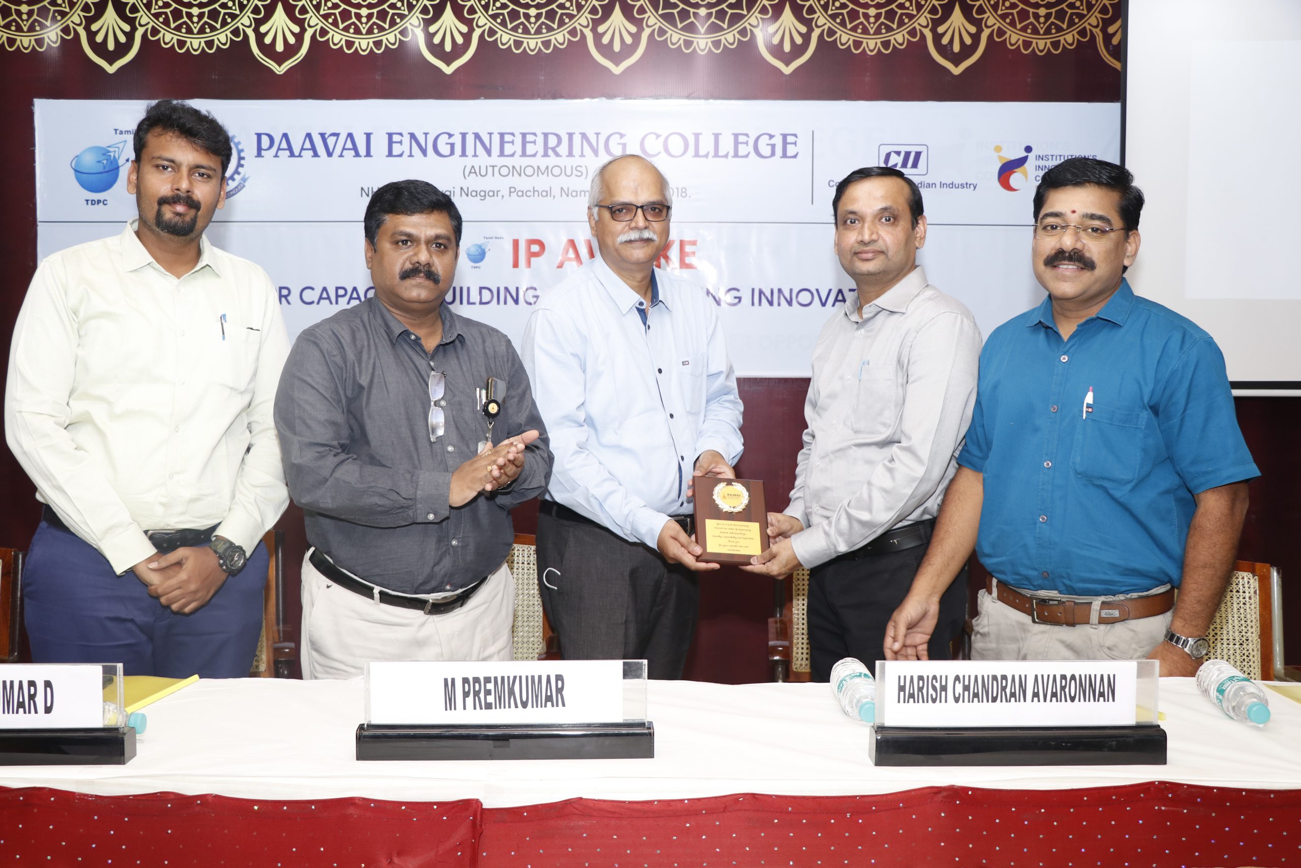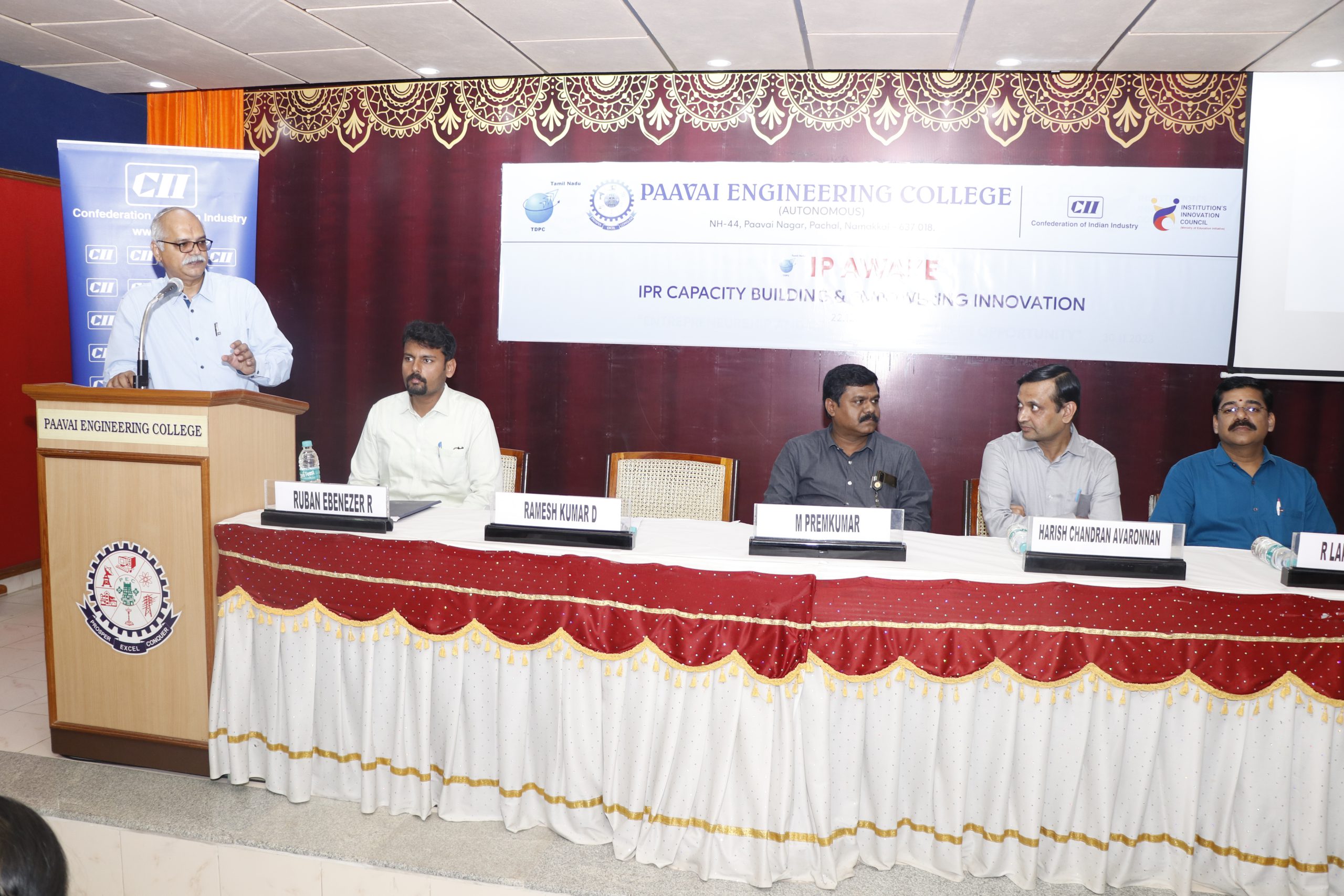 On 22.12.2023, IP AWAKE – IPR Capacity Building and empowering Innovations, an awareness session on Intellectual Property Rights was organized by Confederation Indian Industry (CII) hosted by Paavai Engineering College, Paavai Educational Institutions.