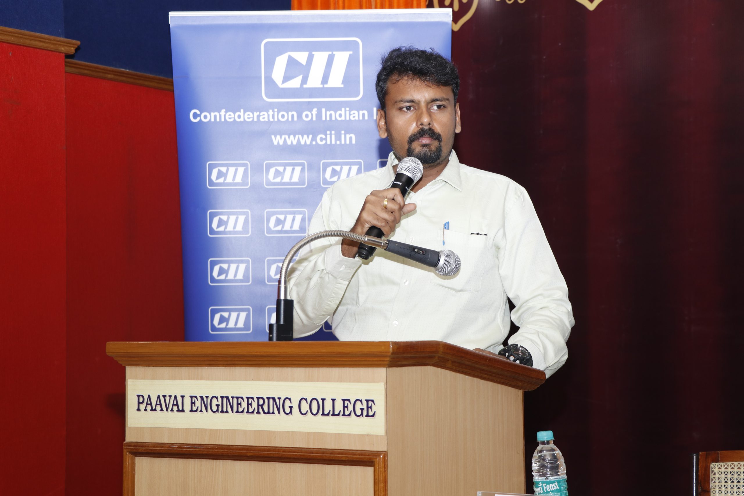 Dr. M. Premkumar, Principal, Paavai Engineering College, delivered the Special address, in which he shared his experiences about the initiatives offered by government. He insisted the students to be interactive with eminent resource persons to become an entrepreneur.