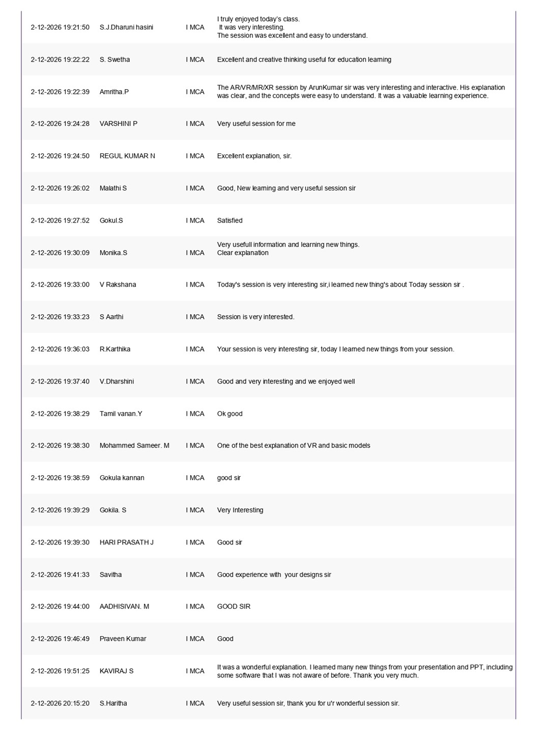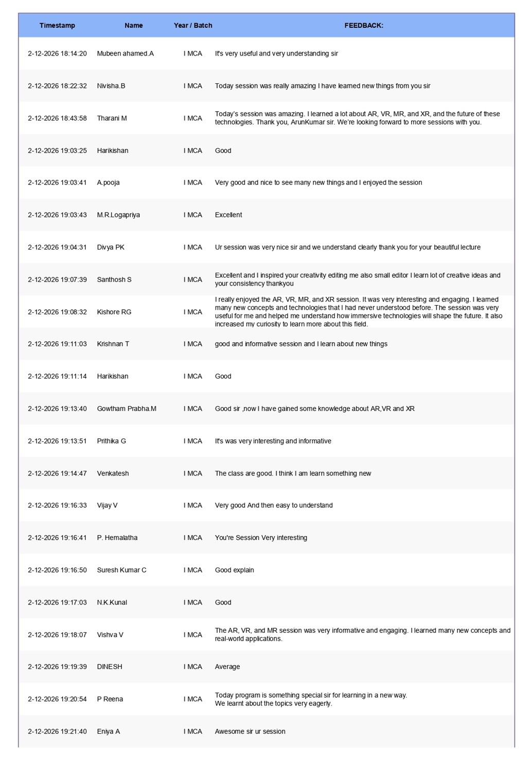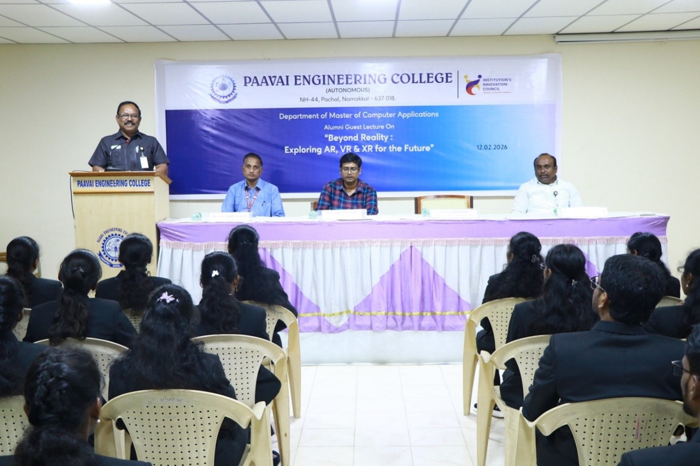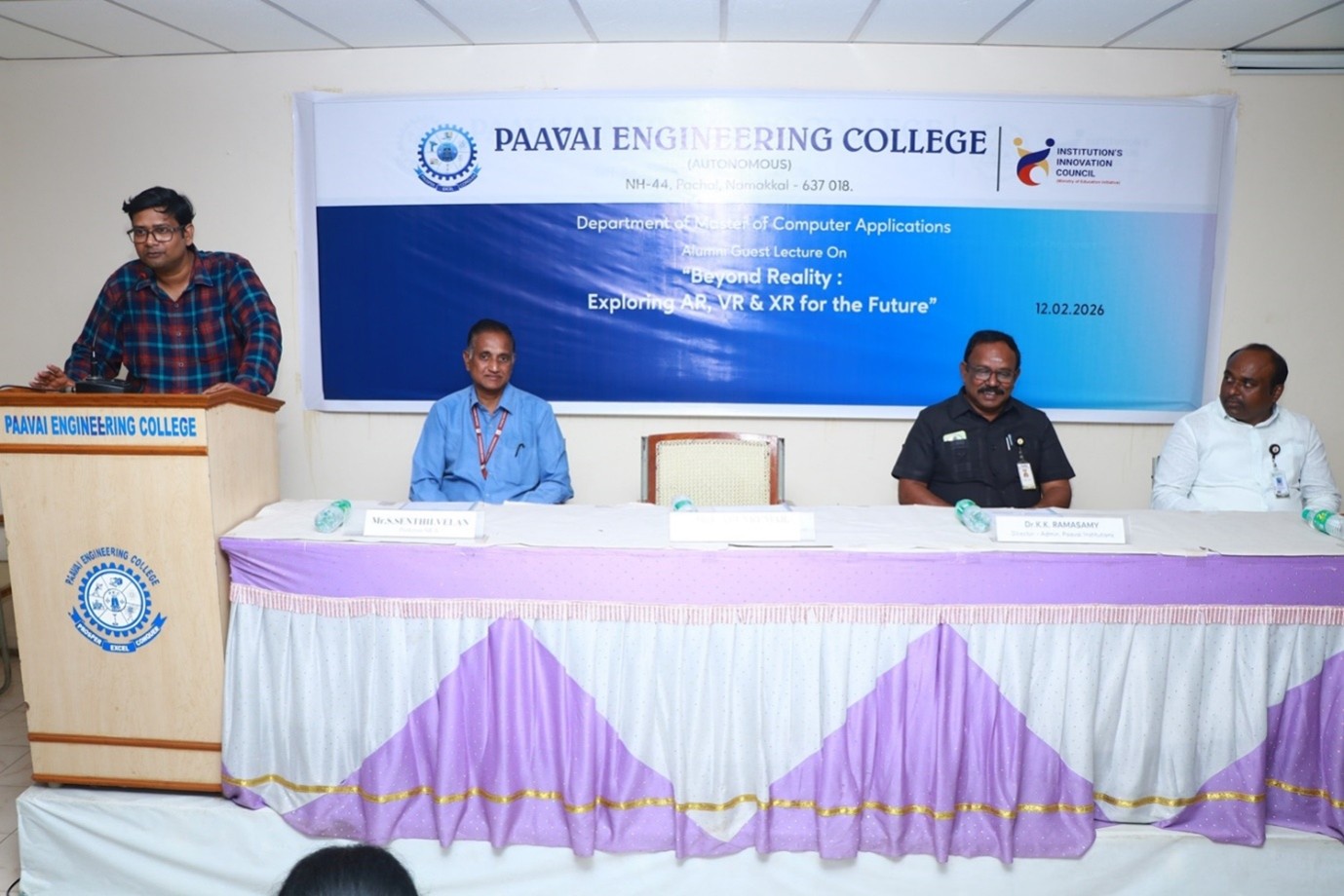 The Department of Master of Computer Applications organized anAlumni Guest Lecture on the topic “Beyond Reality : Exploring AR, VR & XR for the Future” on 12.02.2026 at Cute Hall.