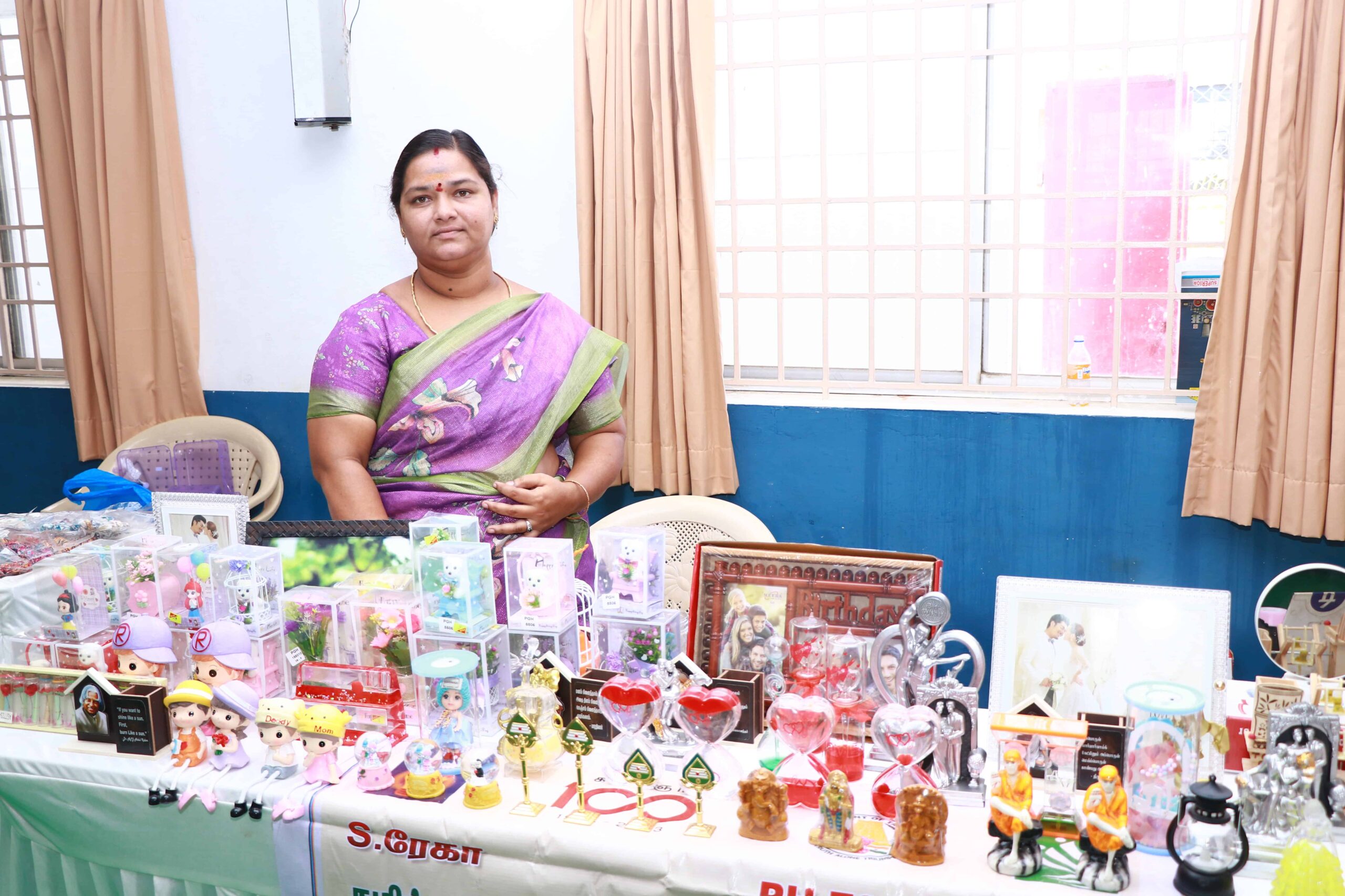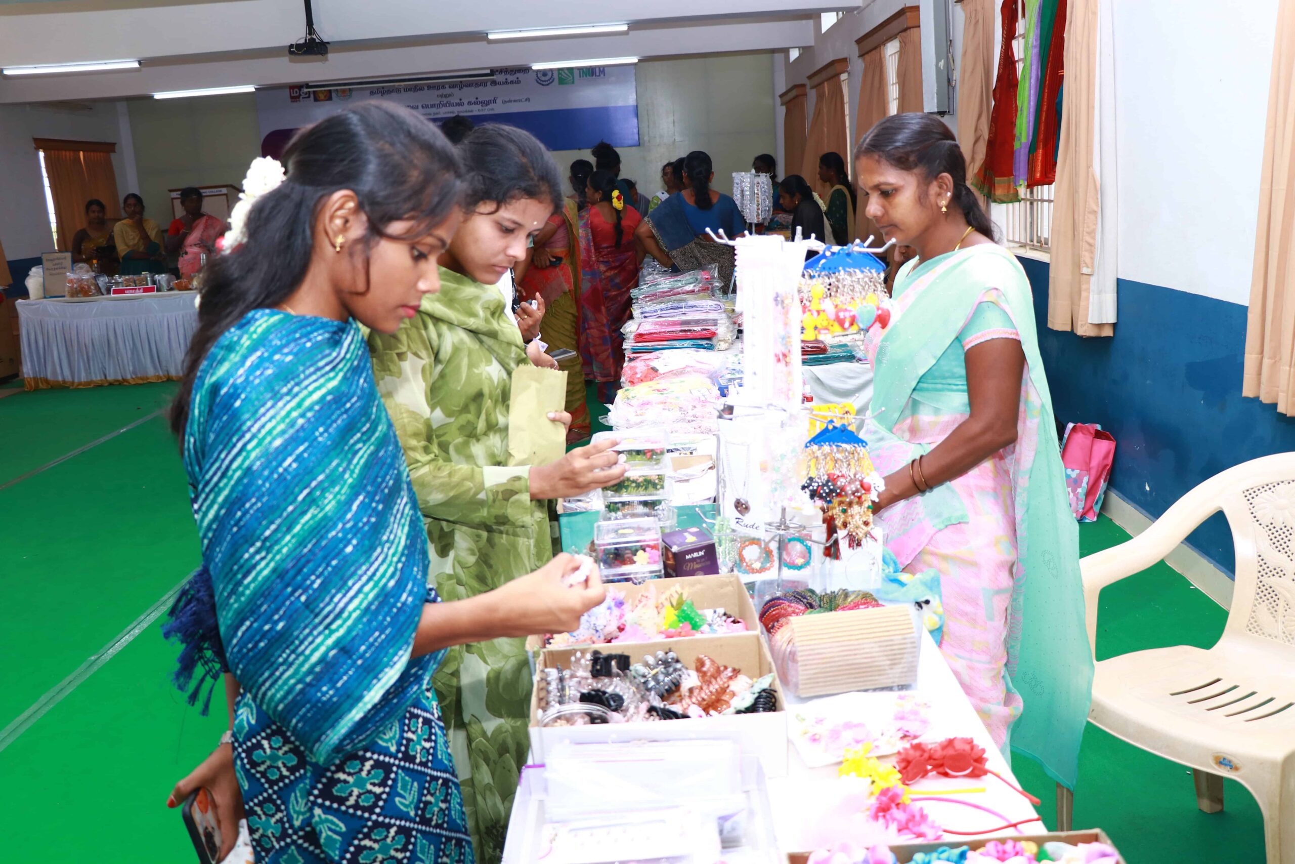 The vibrant bazaar featured stalls run by Women Self Help Group members from various blocks of Namakkal District, including Rasipuram, Tiruchengode, Pallipalayam, and Namagiripettai, among others. They showcased and sold a wide variety of products such as clothing, fancy items, Mudakathan soup, cleaning supplies, coconut and jute products, fresh fruits, handcrafted items, ice creams, and various food items.