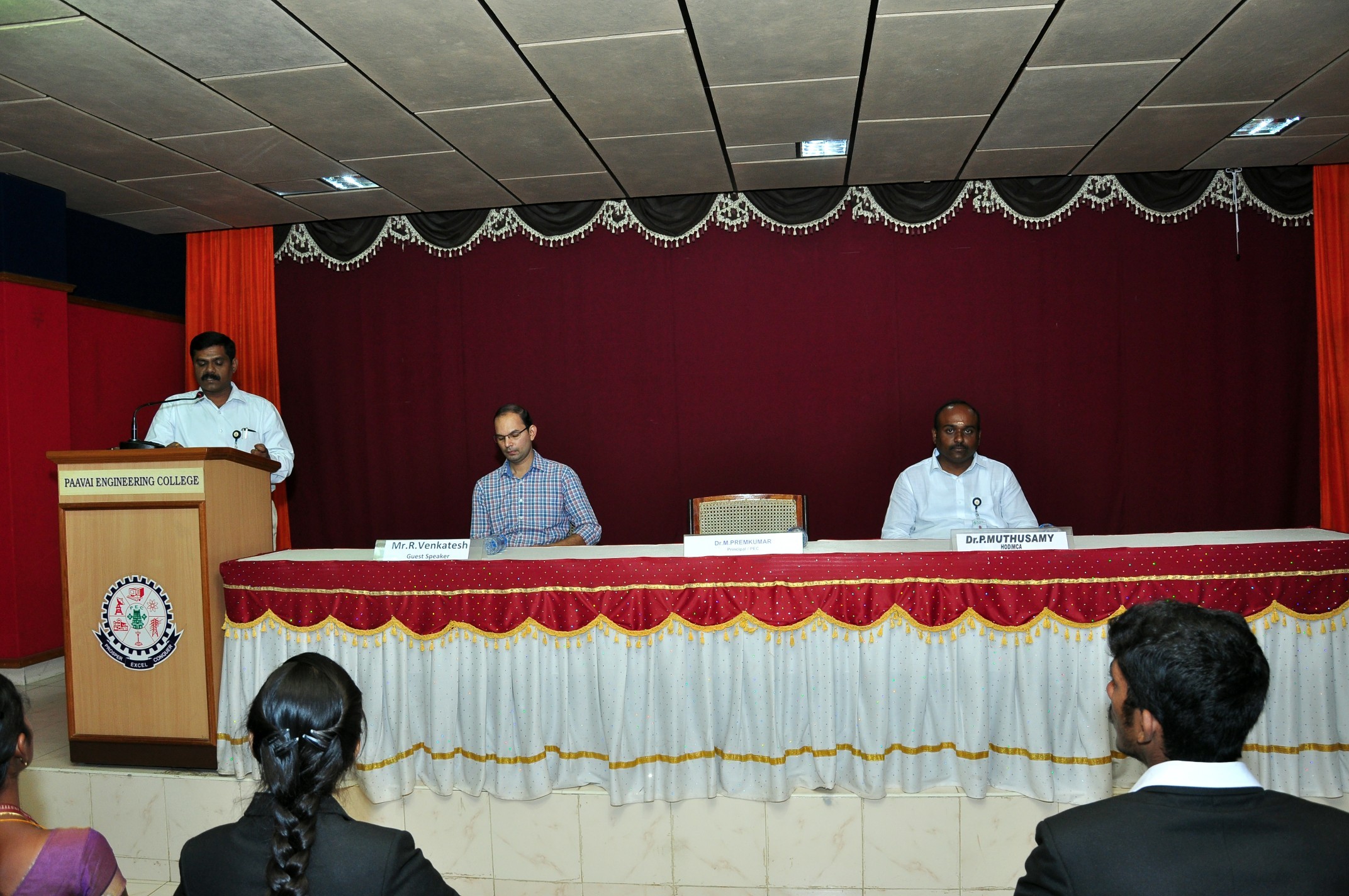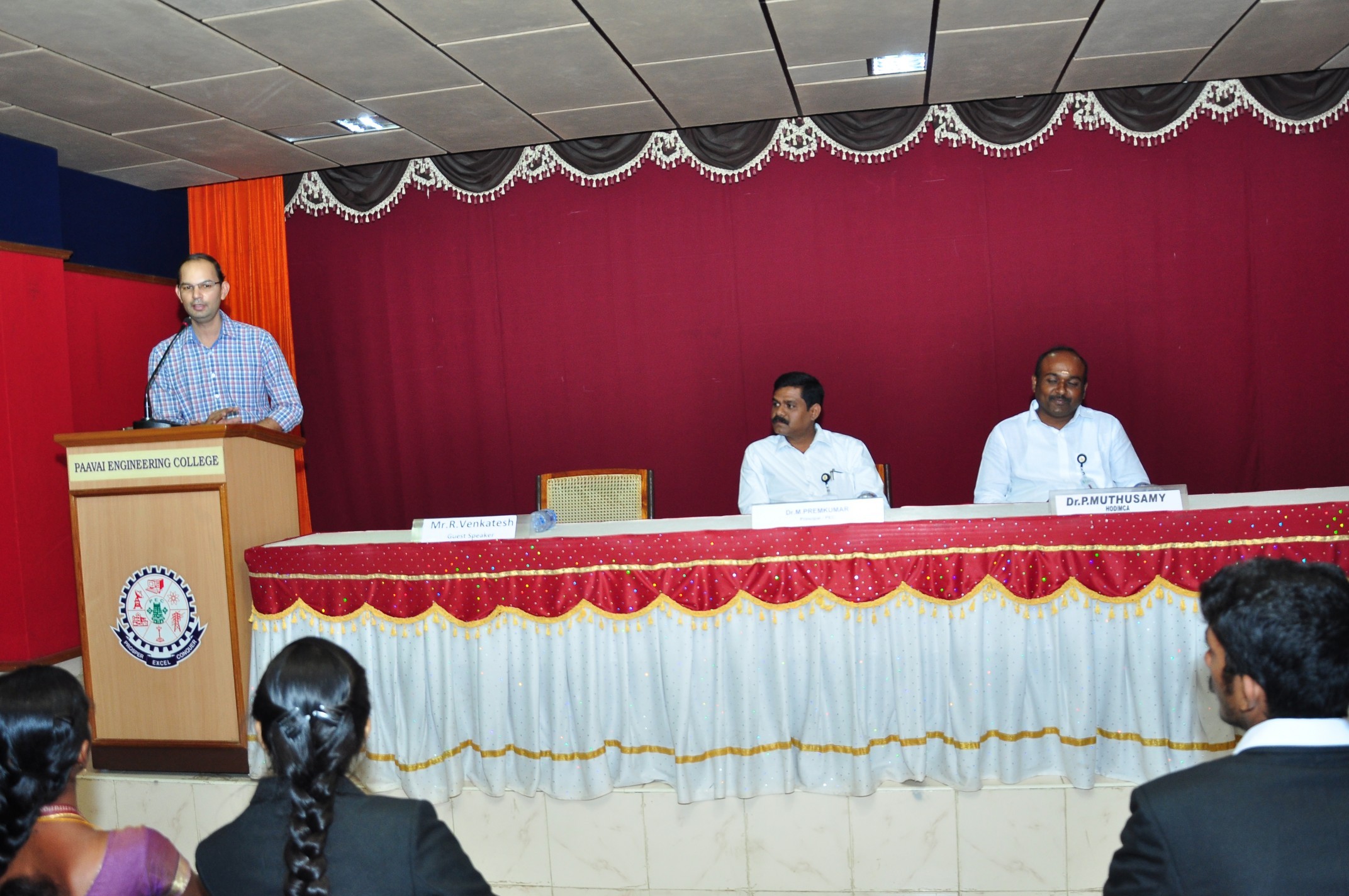 The department of MCA organized a one day seminar on ‘Software Development Trends’ on 29th December 2018. Mr.Venkatesh Rajagopal, Professional2-Service Software Delivery Coordinator, DXC Technology, Hyderabad, was the chief guest for the function. The function started on a divine note with the prayer song. Ms.P.Manjula of II MCA welcomed the gathering. The function was presided over by Dr. M.Premkumar, Principal, Paavai Engineering College. Dr.M.Premkumar, in his presidential address, insisted the students to update their knowledge every day by learning new things around the world. He emphasized the students to play the given role effectively at the time of studying and prepare themselves for employability. Finally, he stressed the students to come out from comfort zone and get ready to face the expectations of the world. The chief guest, Mr.Venkatesh Rajagopal, in his keynote address, instructed the students to gain the basics of every subject associated with them and to get 100% employability. He briefed the students about Software Development Process, Project Team Hierarchy like Head of Development, System analyst, Project Manager, Business Manager, Software Development Manager, Quality Manager and their roles in Software Development. He explained in detail about hiring process steps involved the need, plan, job description, post and promote job openings, recruiting, applicant screening, interviews, applicant talent assessment, hiring and on boarding. Then, he narrated software development trends, challenges in software development, primary programming language, tools used for project management, source code management tools, hiring criteria, developer performance, delivery problems in software teams and project execution trends, methods with live examples. The sessions were highly interactive and the queries of the students were clearly clarified by the resource person. The students were able to understand software development process concepts and develop the software along with the latest technology. Earlier, Introduction of the chief guest was given by Ms.K.R.Kiruthika of II MCA. The function concluded with vote of thanks by Ms.S.Rajpriya, II MCA. Heads of various departments and faculty members participated in the guest lecture programme and made it a grand success. Students from MCA department actively participated with full zeal and were benefitted by this programme.
