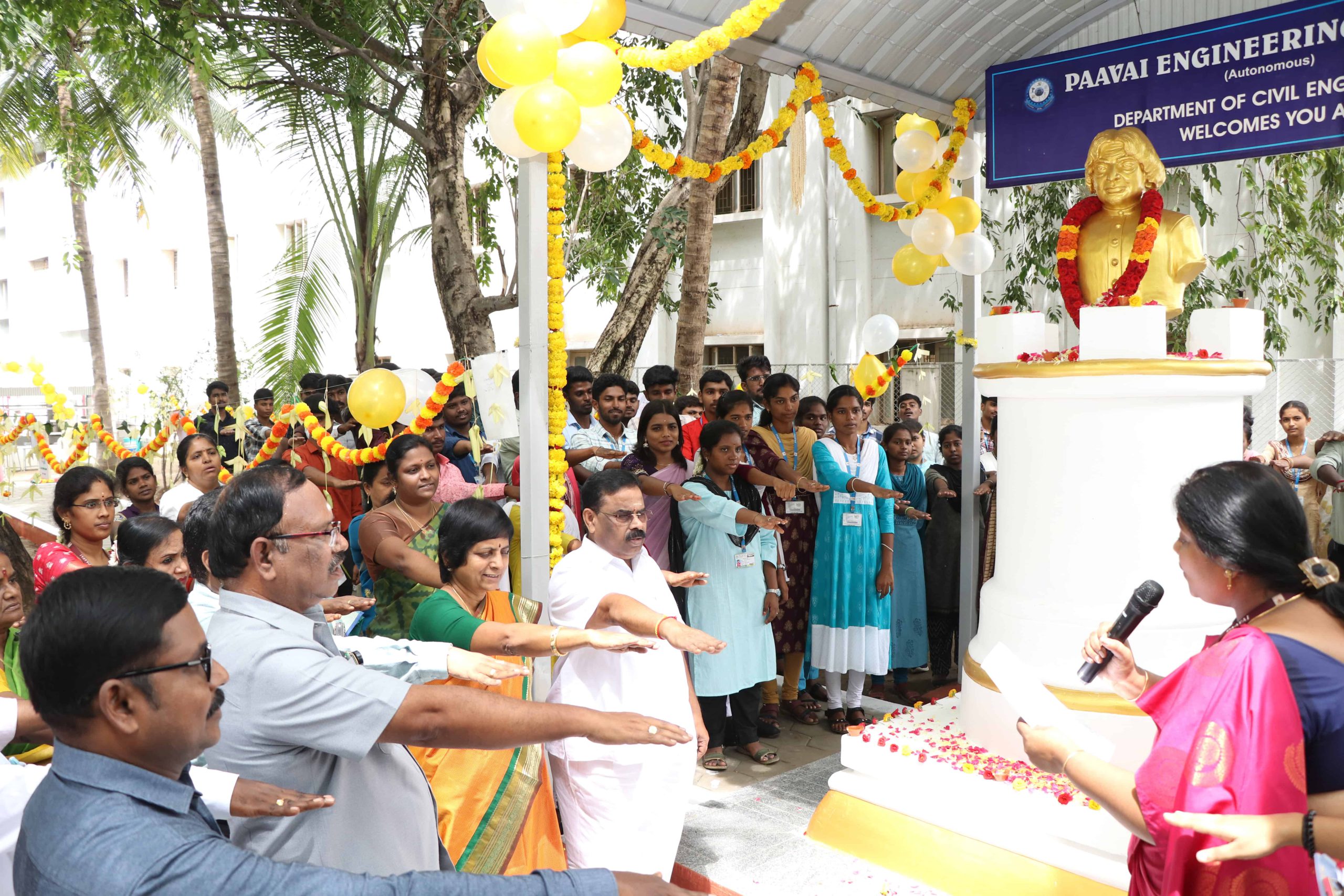 The Tribute Ceremony on October 16th addressed by Shri C.A. N.V. Natarajan, Chairman of Paavai Educational Institutions, who highlighted the significance of Dr.Kalam’s values and vision. Smt. Mangai Natarajan, Correspondent of Paavai Educational Institutions, offered her felicitations to the gathering, further motivating the students and faculties.