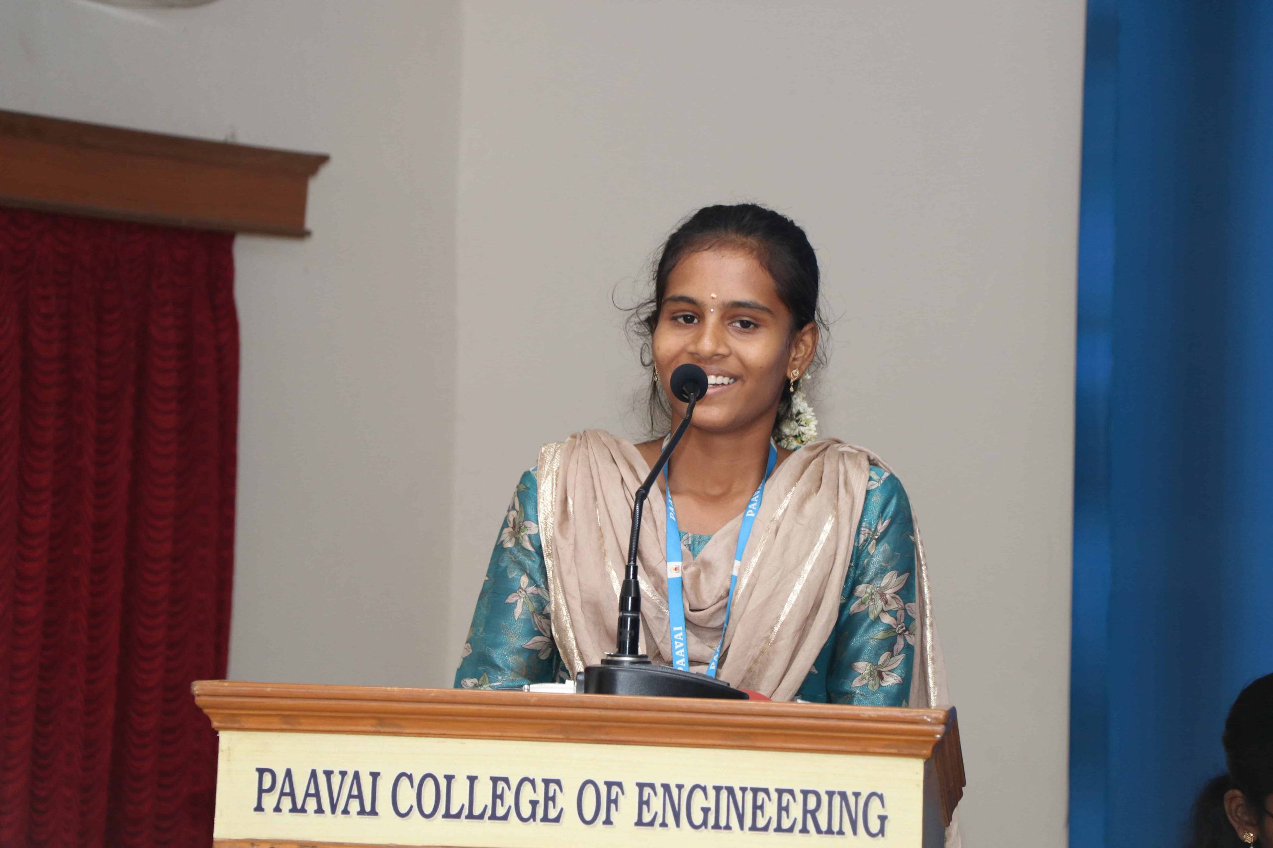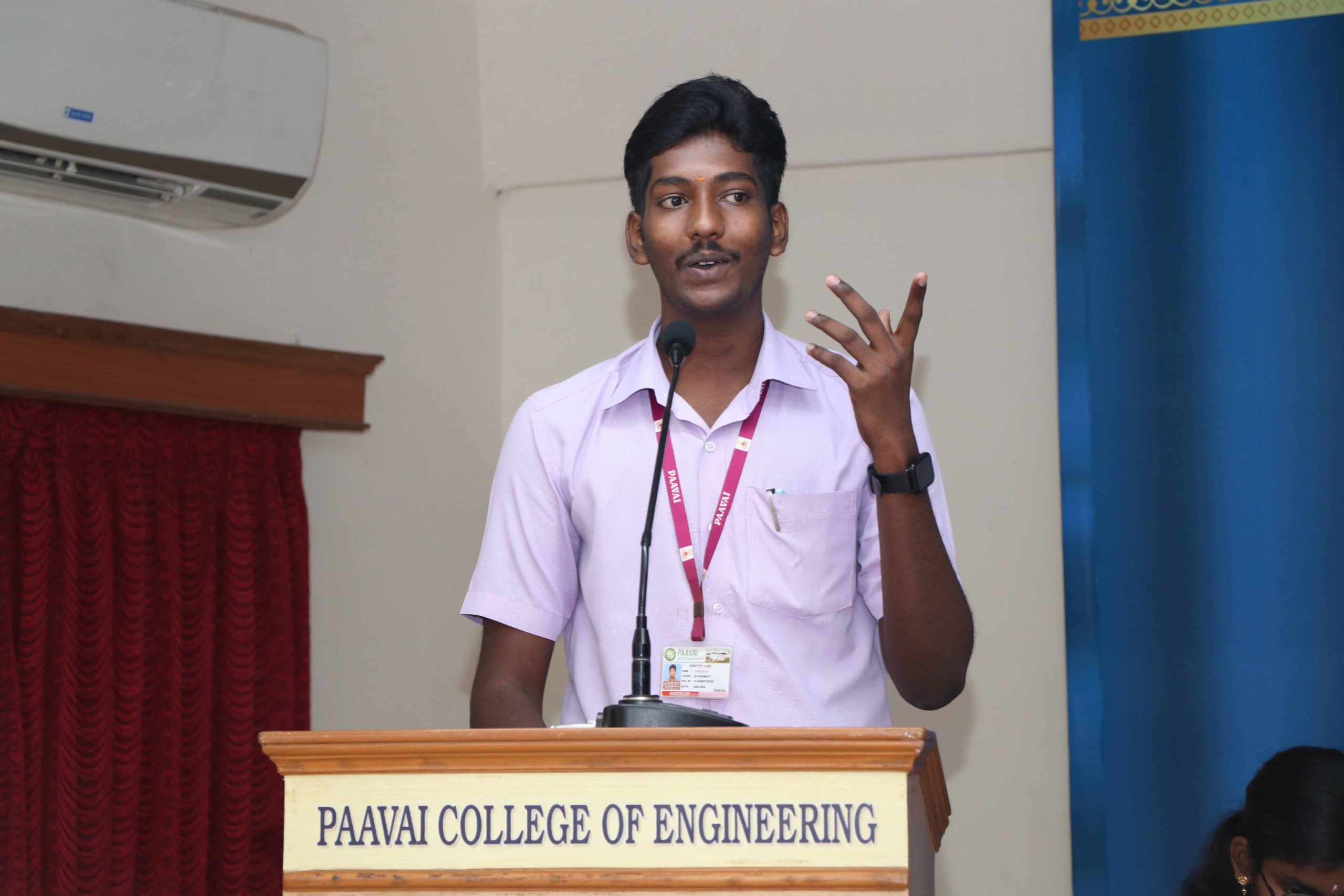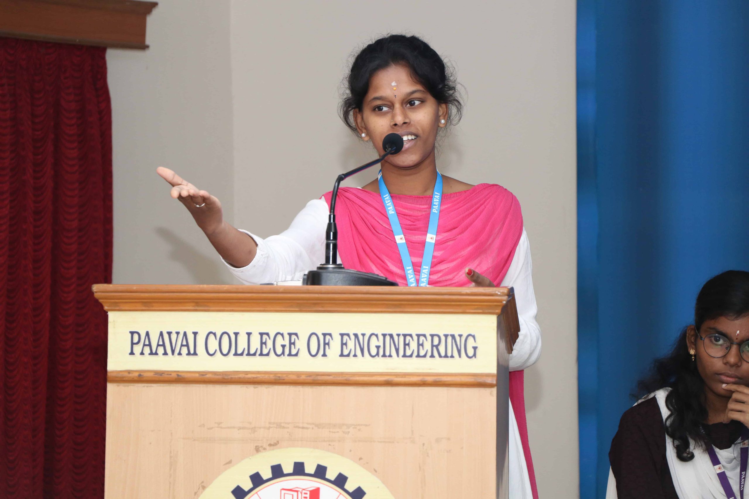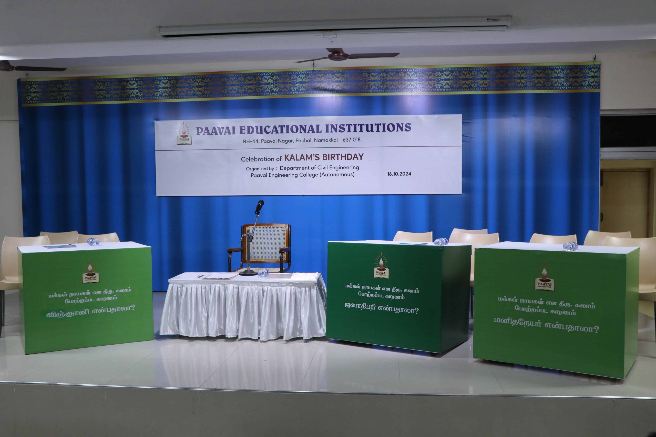 The another event debate was conducted in afternoon in the title “ மக்கள் நாயகன் என திரு. கலாம் போற்றப்பட காரணம் – விஞ்ஞானி என்பதாலா? ஜனாதிபதி என்பதாலா? மனிதநேயர் என்பதாலா? ” Three teams participated in the debate, each comprising three members. The judging panel, headed by Dr. A. Immanuvel, Vice Principal, Paavai College of Engineering and Prof.K.Sharmiladevi, HoD/Civil, along with Civil faculty members & A.Samundeswari, ASP/ECE and around 600 students were attended the debate event.