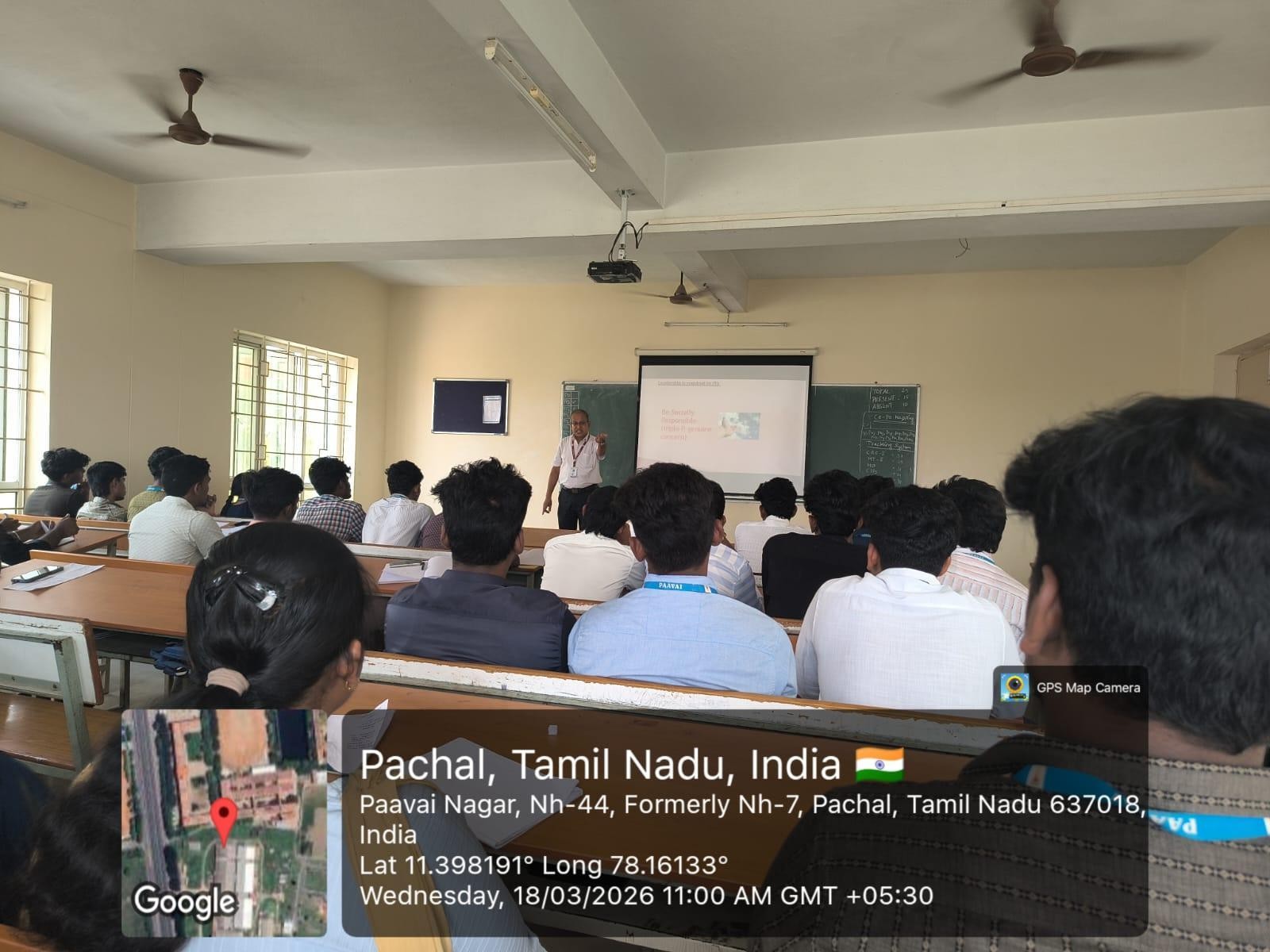 The Department of Chemical Engineering (CE), Paavai Engineering College in Association with Institution Innovation Council (IIC) jointly organized Guest Lecture on “Enhancing Soft Skills and Personality” to strengthen students’ personal and professional competencies on 18.03.2026. The session focused on the importance of communication, leadership, and emotional intelligence in shaping an individual’s personality and career success.