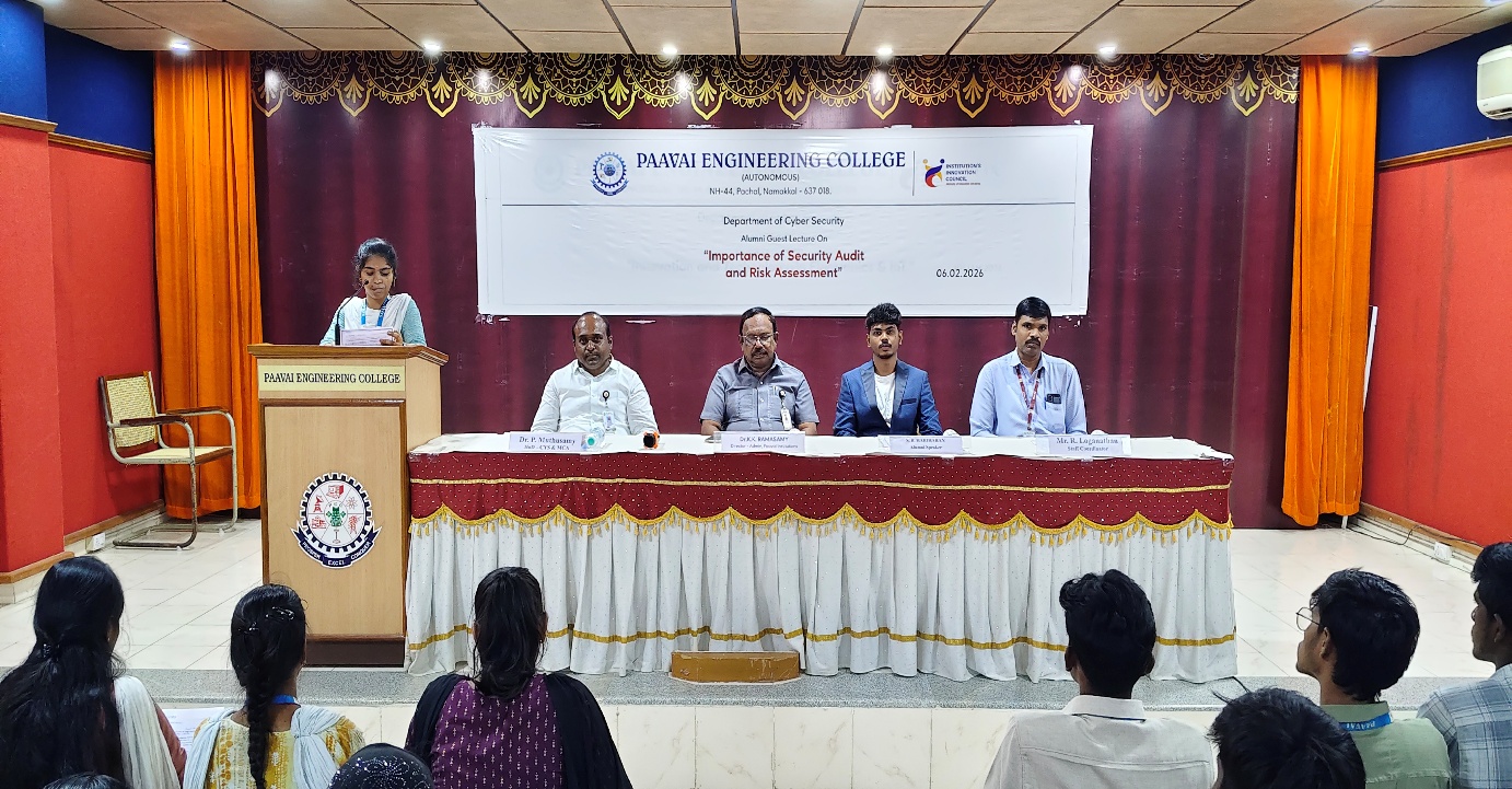 The Department of Cyber Security organized an Alumni Guest Lecture on “Importance of Security Audit and Risk Assessment” on 06.02.2026 at Kalam’s Chamber.