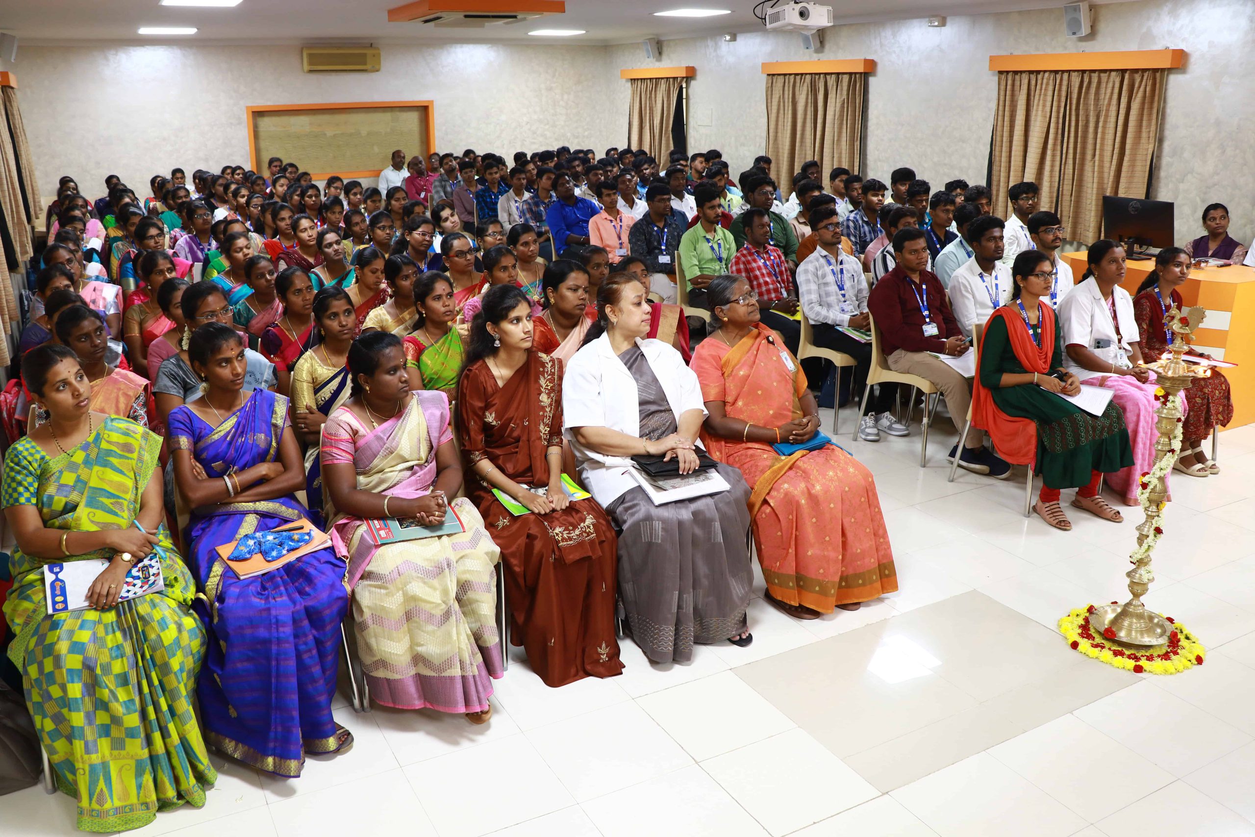 Dr.J.MurshithaBanu, Head, FDD, elaborated the essence of “Be Fluent”. She acquainted the students with the skills of English language such as Listening, Speaking, Reading, and Writing. She gave tips to improve one’s Communication skills. In this Session, the students came to know about the importance of English which is a global language and a window to the world.