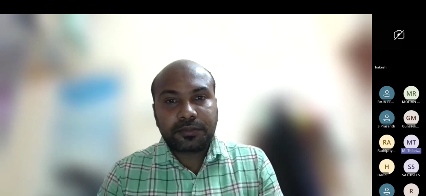 The session commenced with a warm welcome address by Ms. M. Thilothama, a Third -year CSE (AI and ML) student, who introduced the speaker and set the tone for the event. D.Yuvaraj He explained how creative problem-solving and user-focused approaches helped transform simple ideas into impactful solutions.