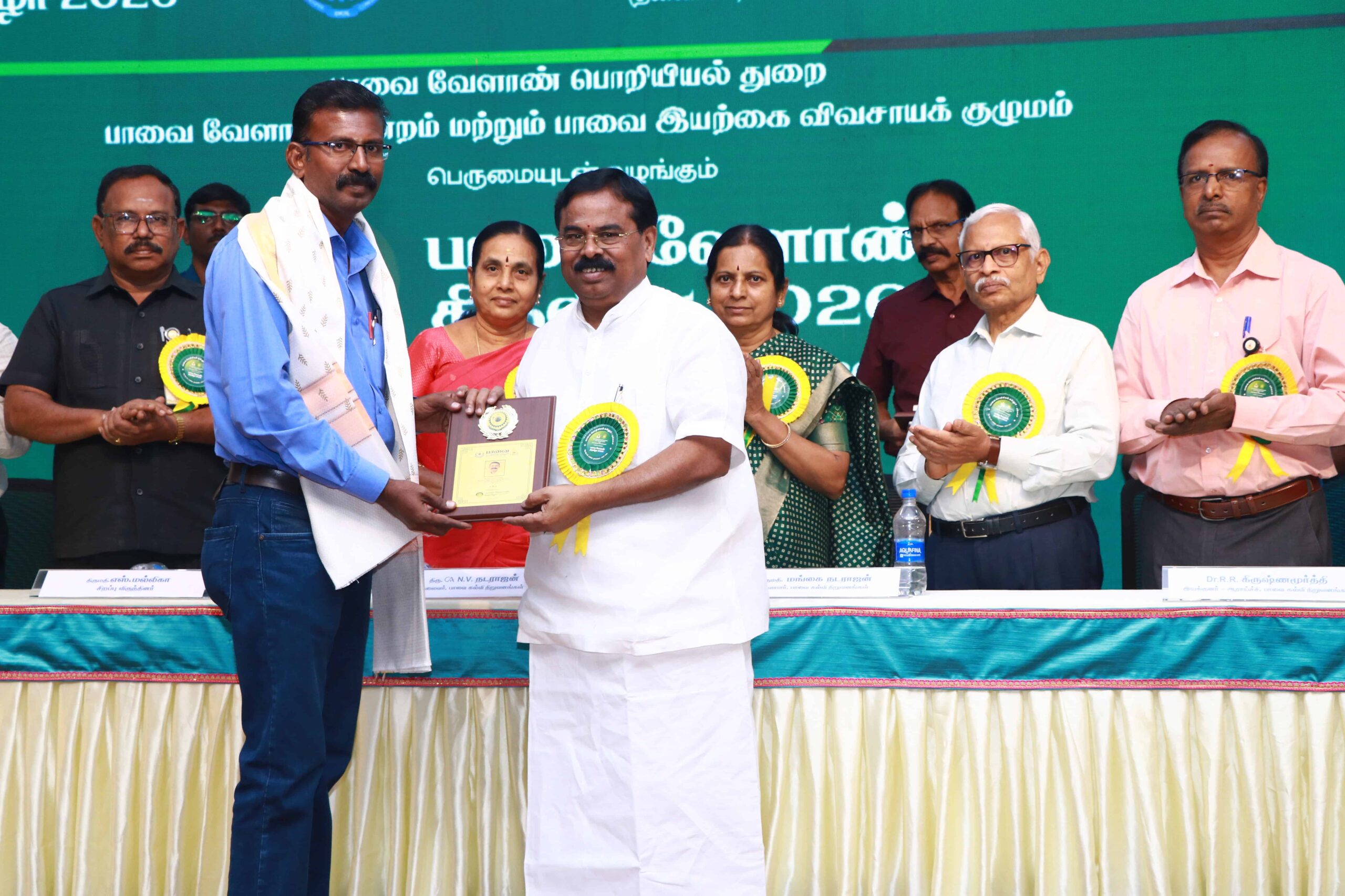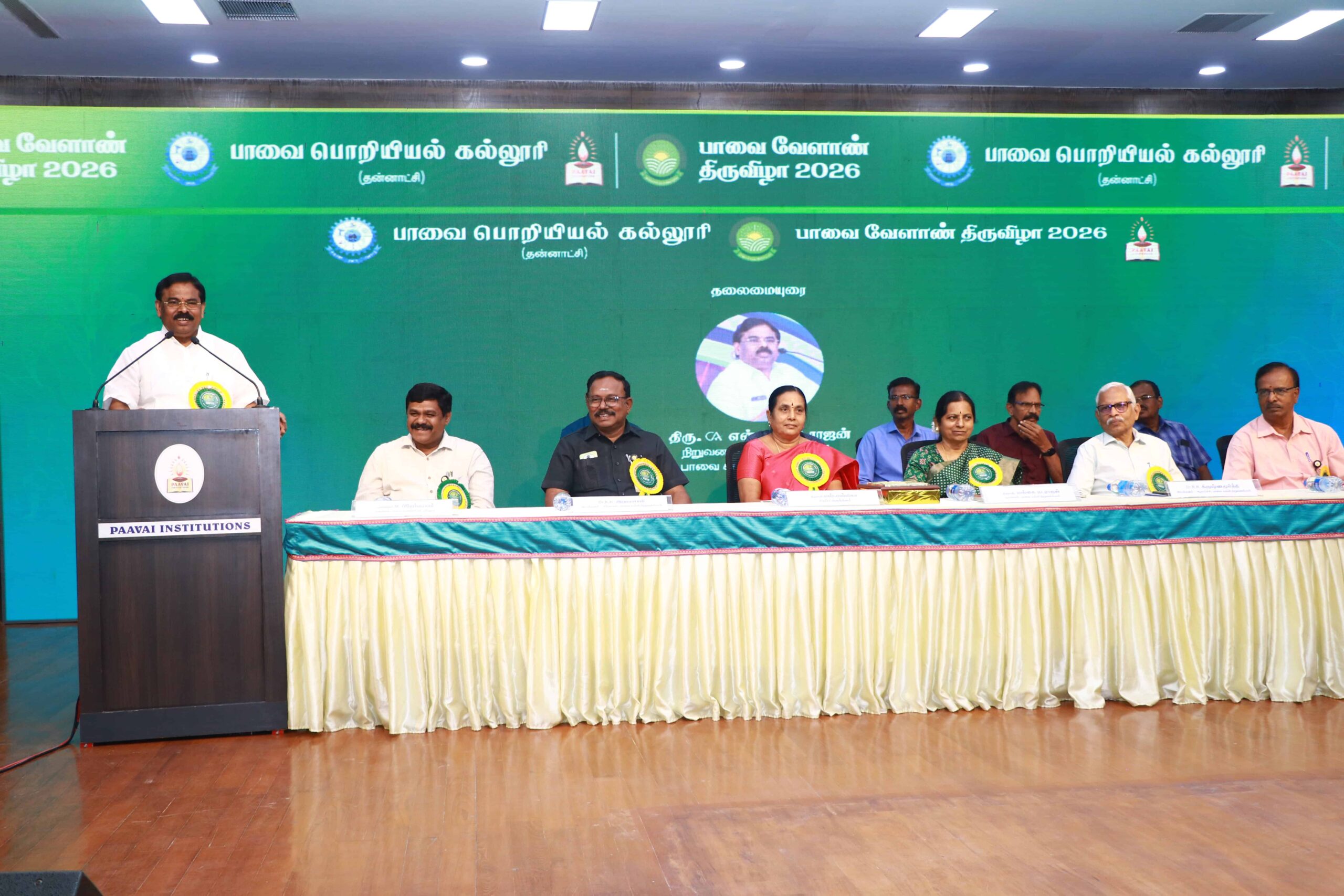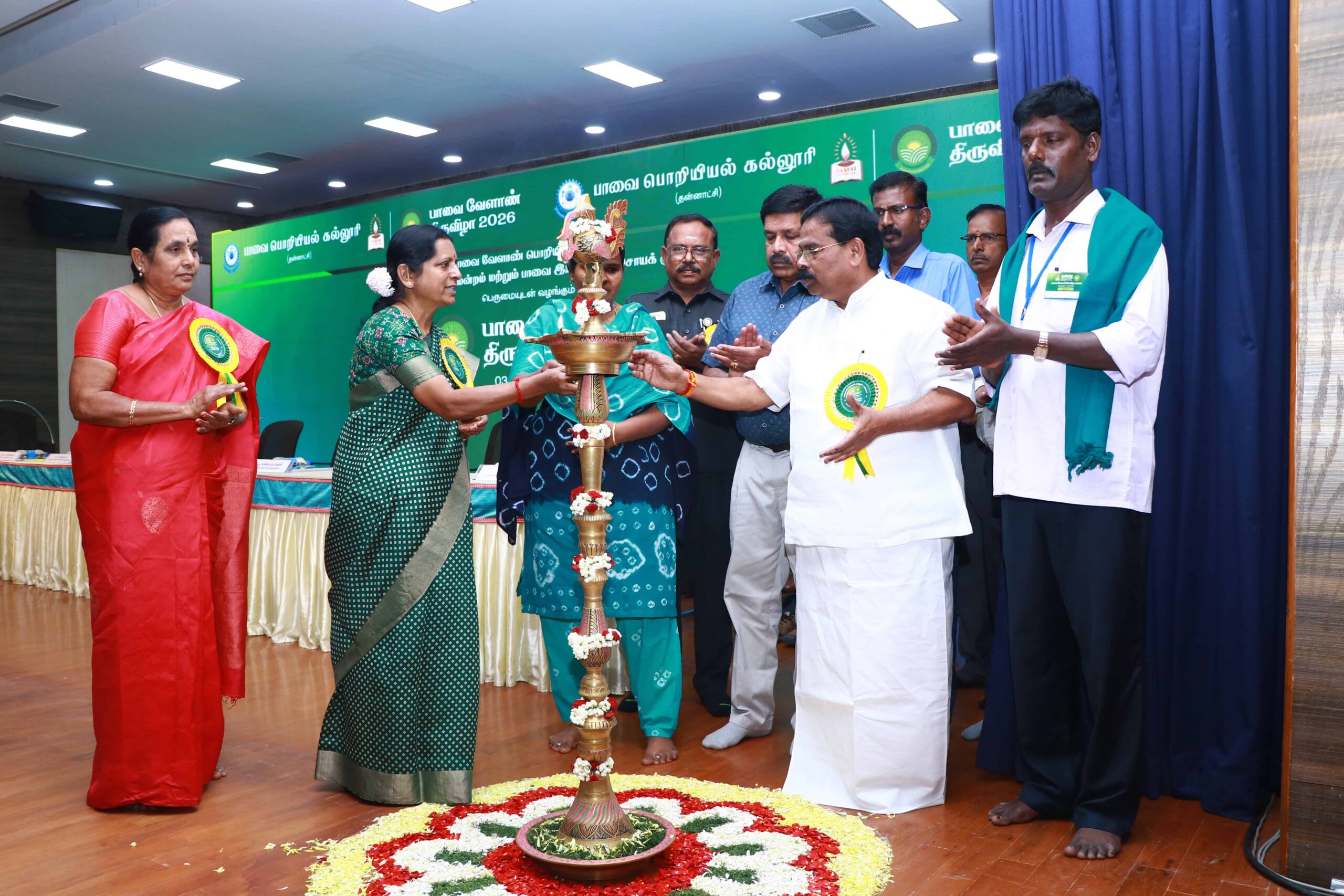 The Department of Agricultural Engineering, Paavai Engineering College, Namakkal, successfully organized the two-day Paavai Velaan Tiruvizha 2026 at Anandha Arangam on February 3 and 4, 2026, with the objective of promoting sustainable, technology-driven, and farmer-centric agricultural development, witnessing active participation from farmers, scientists, academicians, agri-entrepreneurs, startups, and students. The programme commenced (03.02.2026) with a welcome address by Dr. K. K. Ramasamy, Director – Administration, Paavai Institutions, followed by the Presidential Address by CA N. V. Natarajan, Chairman, Paavai Institutions, who emphasized the integration of modern technologies with traditional farming practices for Nation development, after which the Chief Guest, Mrs. S. Malliga, Joint Director of Agriculture, Namakkal, delivered her address presenting detailed statistics on the farming scenario in Namakkal district, government schemes, and major initiatives beneficial to farmers, and an inspiring address by Mrs. Mangai Natarajan, Correspondent, Paavai Institutions, highlighting inclusive growth and youth involvement in agriculture.