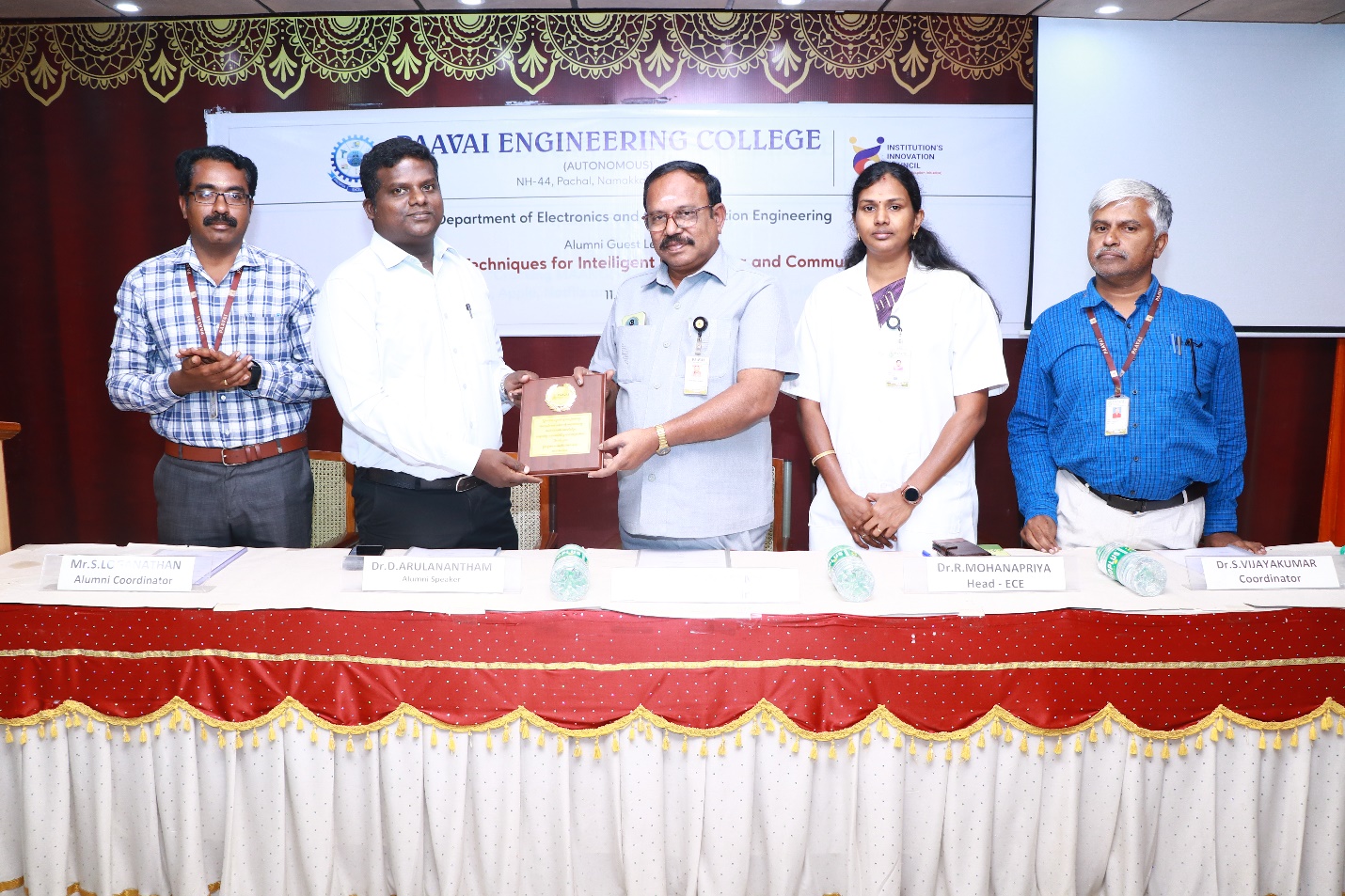The Department of Electronics and Communication Engineering (ECE) at Paavai Engineering College, in association with the Institution’s Innovation Council, organized an alumni guest lecture titled “Empowering Techniques for Intelligent Networking and Communication” on 11.02.2026 at Kalam’s Chamber from 10:00 AM to 1:00 PM. The event aimed to provide students with insights into the rapidly evolving landscape of next-generation communication systems.