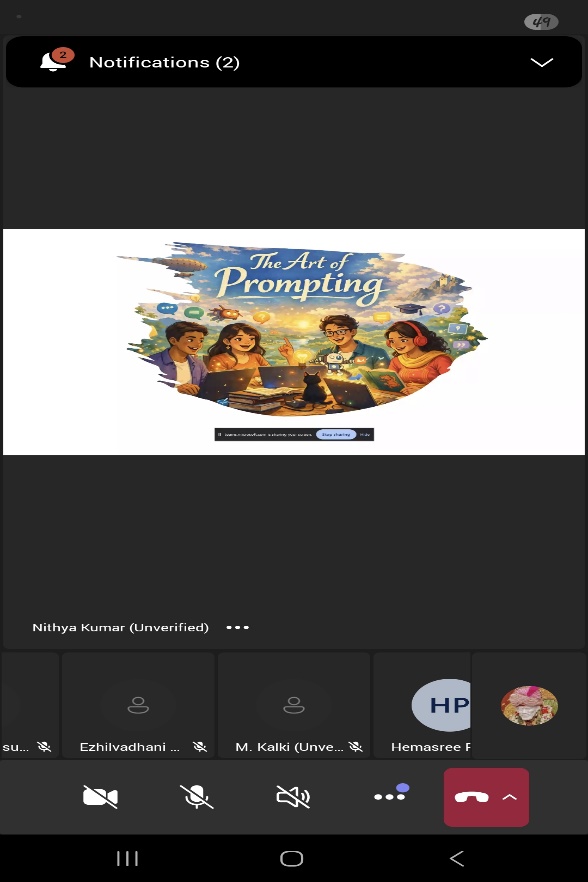 The Department of Computer Science and Engineering of Paavai Engineering College, organized an Alumni Guest Lecture on “The Art of Prompt Engineering” on 31st January 2026 through an online platform. The session began with the Welcome Address delivered by Ms. R. Dhivyasri, Final Year, CSE, who warmly greeted the dignitaries and participants. The Presidential Address was delivered by Dr. M. Premkumar, Principal of Paavai Engineering College.