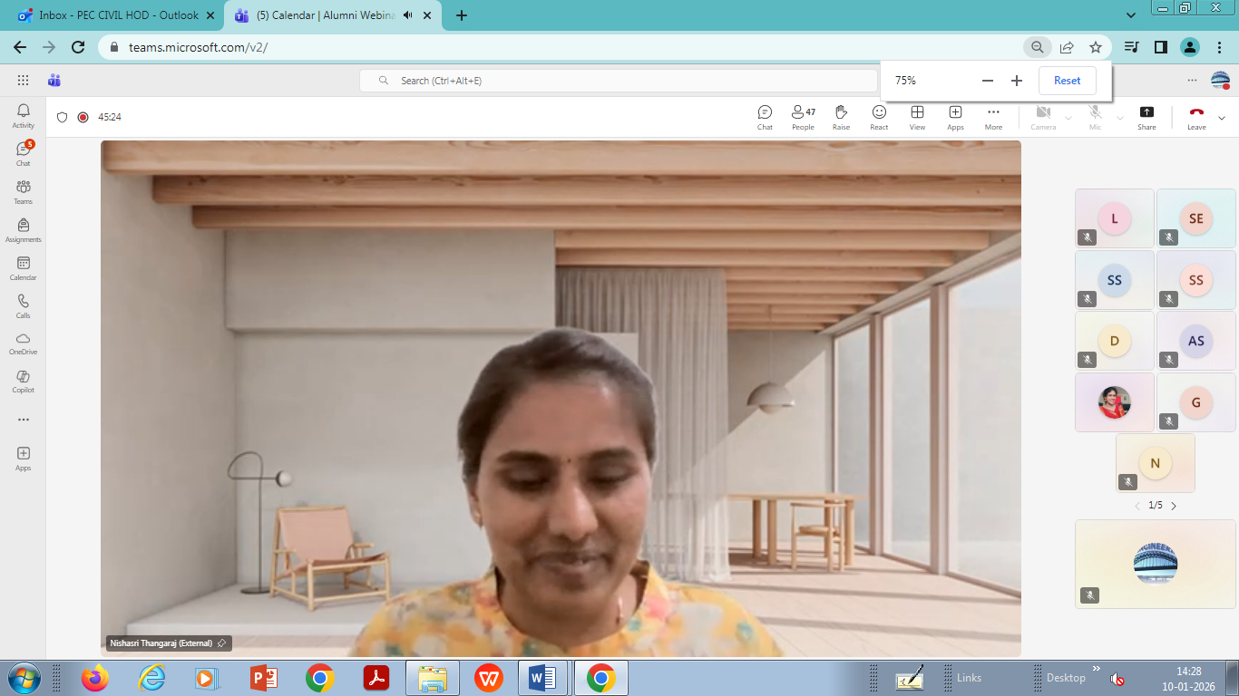 Prof.K.Sharmiladevi, HoD/Civil, Alumni Faculty coordinators along with faculty members, and around 70 participants were present in the Webinar.
