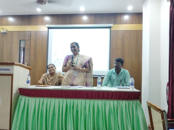 The Guest Lecture was delivered by Mrs. R. Padmavathi, Executive Engineer, Department of Agricultural Engineering, Namakkal District. She presented an in-depth explanation of the “End to End Farm Mechanization” scheme, detailing its objectives, operational procedures, and subsidy frameworks. She elaborated on the types of machinery supported under various components of the scheme—from land preparation to harvesting—and underscored the importance of mechanization in improving productivity and reducing cultivation costs. Her insightful presentation inspired students to understand the practical applications of government initiatives in promoting agricultural modernization.