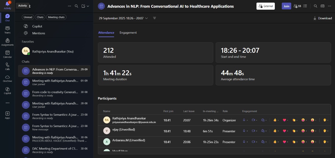 The Department of B.E. CSE (AI and ML), Paavai Engineering College (Autonomous), organized a Guest Lecture on the topic “Advances in NLP: From Conversational AI to Healthcare Applications” on 29th September 2025.