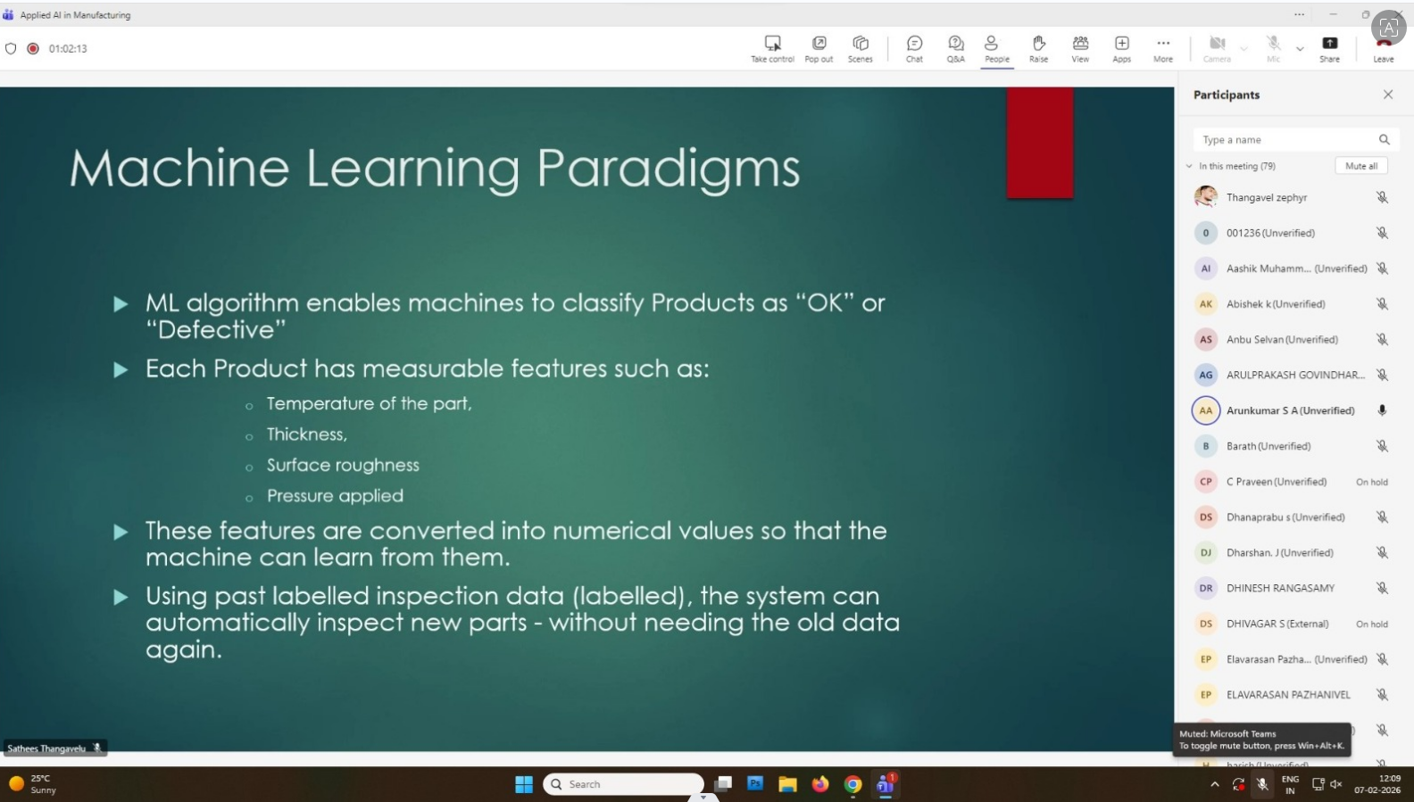The Department of Mechanical Engineering, Safety and Fire Engineering, robotics and Automation Engineering and the Resource Club of Paavai Engineering College organized an online Guest Lecture on “Applied AI in Manufacturing” via the Microsoft Teams platform on February 7, 2026, from 11:30 AM to 1:00 PM.