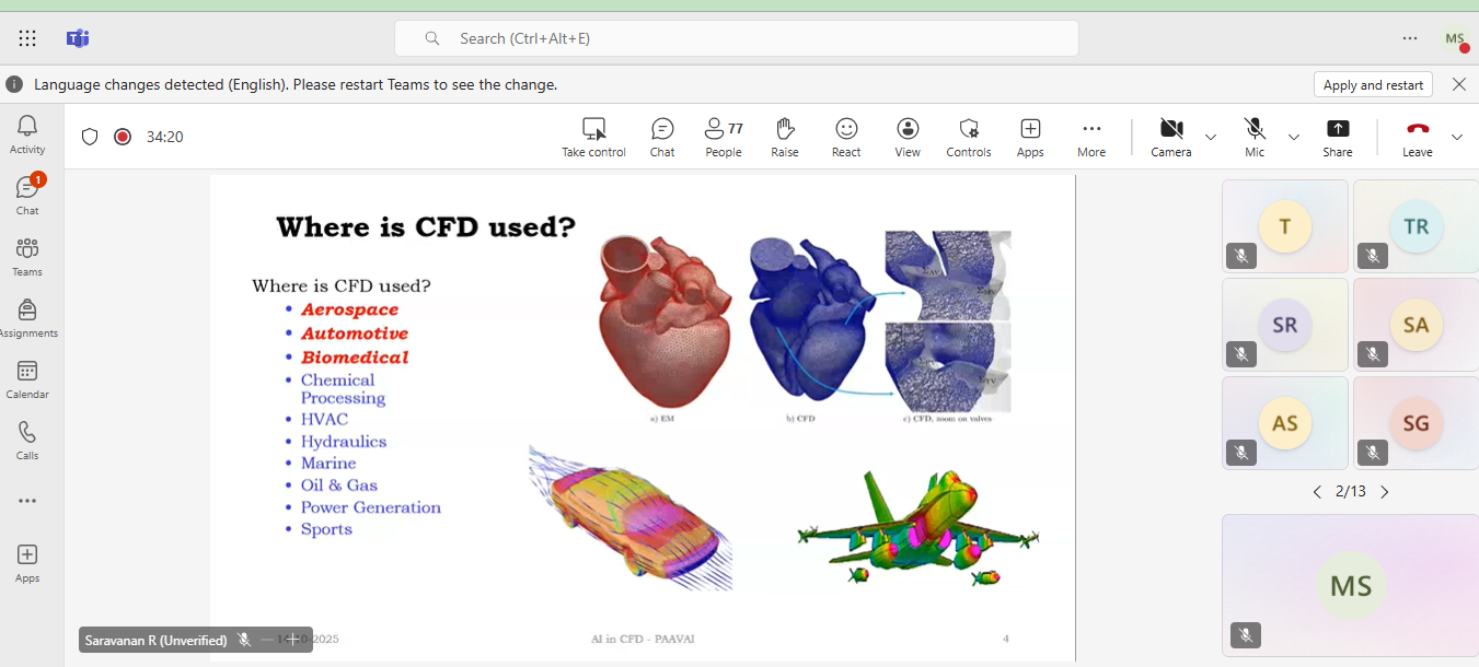 During the lecture, the resource person elaborated on the role of AI and Machine Learning in CFD, emphasizing their potential to accelerate simulation processes, improve prediction accuracy, and optimize aerodynamic design parameters. He also discussed various case studies and emerging research trends where AI techniques are revolutionizing traditional CFD workflows in aerospace applications.