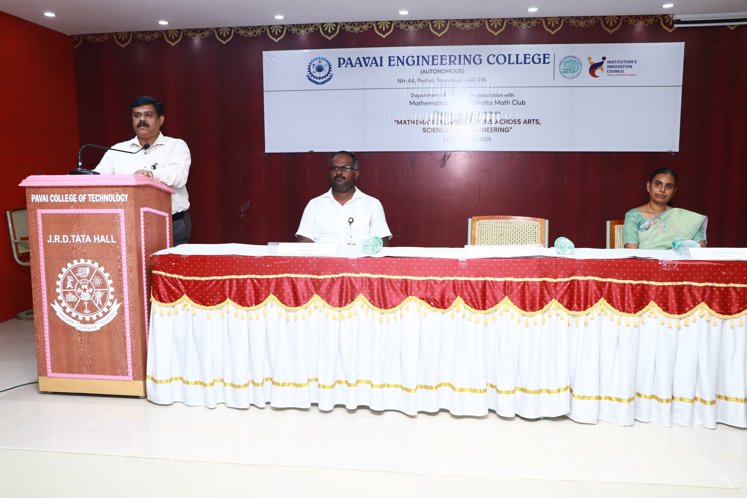 The session focused on the theme “Mathematical Applications Across Arts, Science, and Engineering”, aiming to highlight the importance of mathematics as a universal language that connects diverse disciplines. Dr. Annapoorani began her lecture by explaining the nature of mathematics as the language of nature, rooted in logic, patterns, symmetry, change, and structure. Quoting eminent mathematicians and scientists such as Gauss, Galileo, Einstein, Aryabhata, Archimedes, and Shakuntala Devi, she emphasized the timeless relevance of mathematics in human progress.