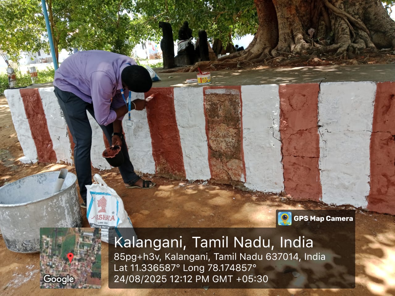 We repainted the Vinayakar temple and Murugan temple walls and white washed the temple compound walls at Kalangani. |