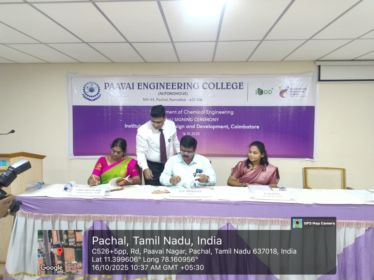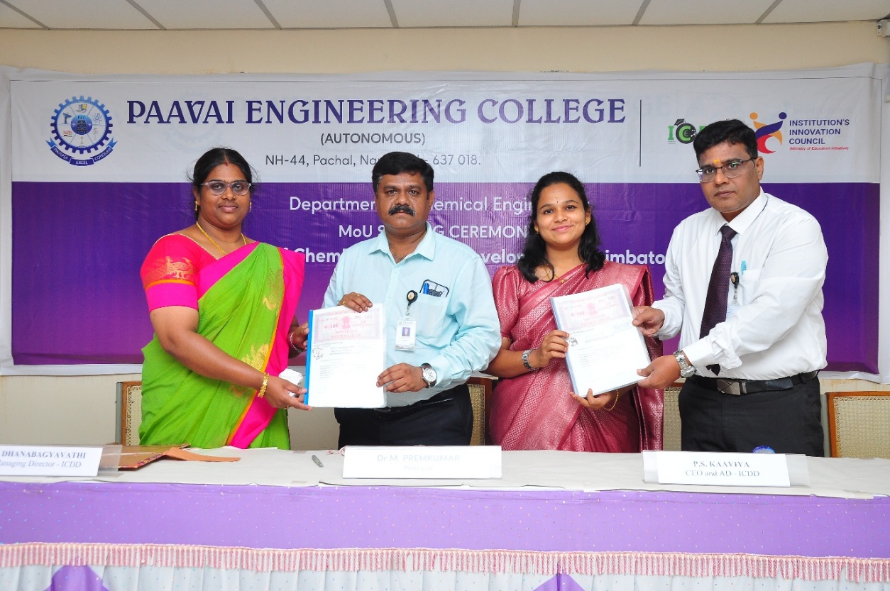 The event began with a welcome address delivered by Dr. P. Jayakaran, Head of the Department of Chemical Engineering, followed by the presidential address given by Dr. M. Prem Kumar, Principal of Paavai Engineering College.