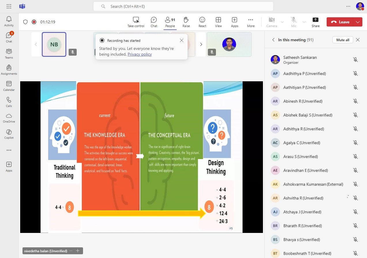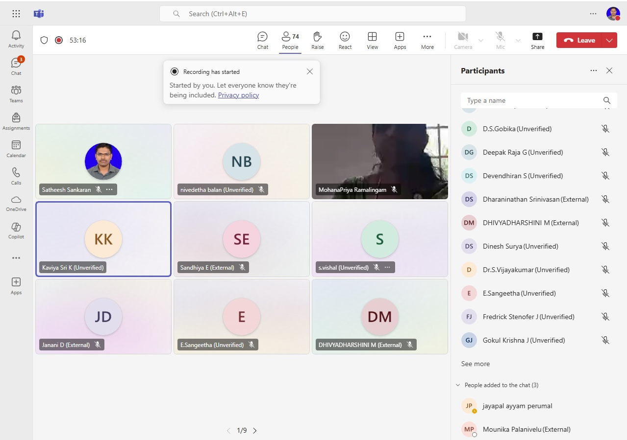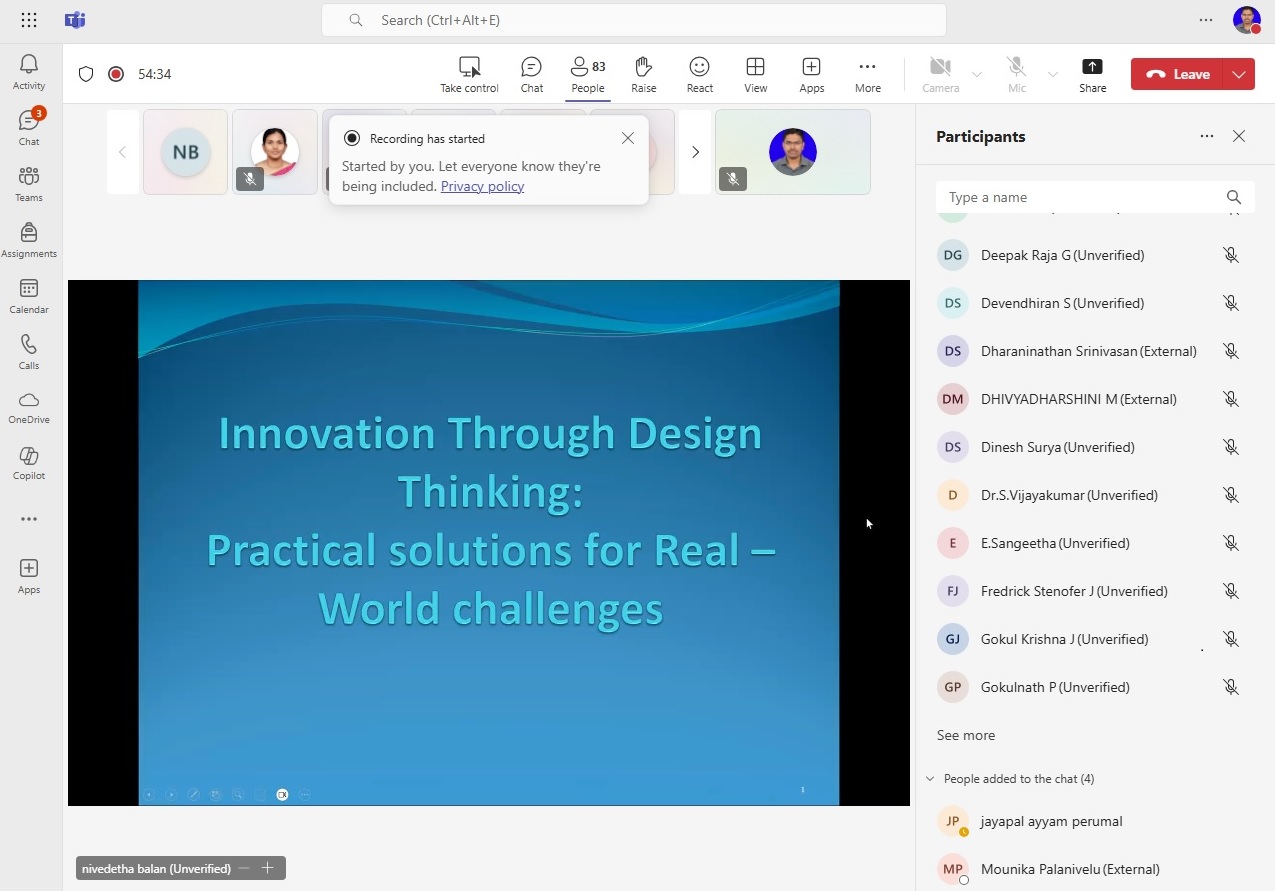 Dr. Nivedetha began the session with an introduction to Deep Learning, which was both insightful and inspirational, offering participants a fresh perspective on creative problem-solving. The session was highly engaging and practical, enriched with real-world applications and examples that made the concepts easy to understand and connect with. Her visionary approach and emphasis on collaborative thinking encouraged participants to explore innovative strategies and frameworks for addressing challenges effectively.