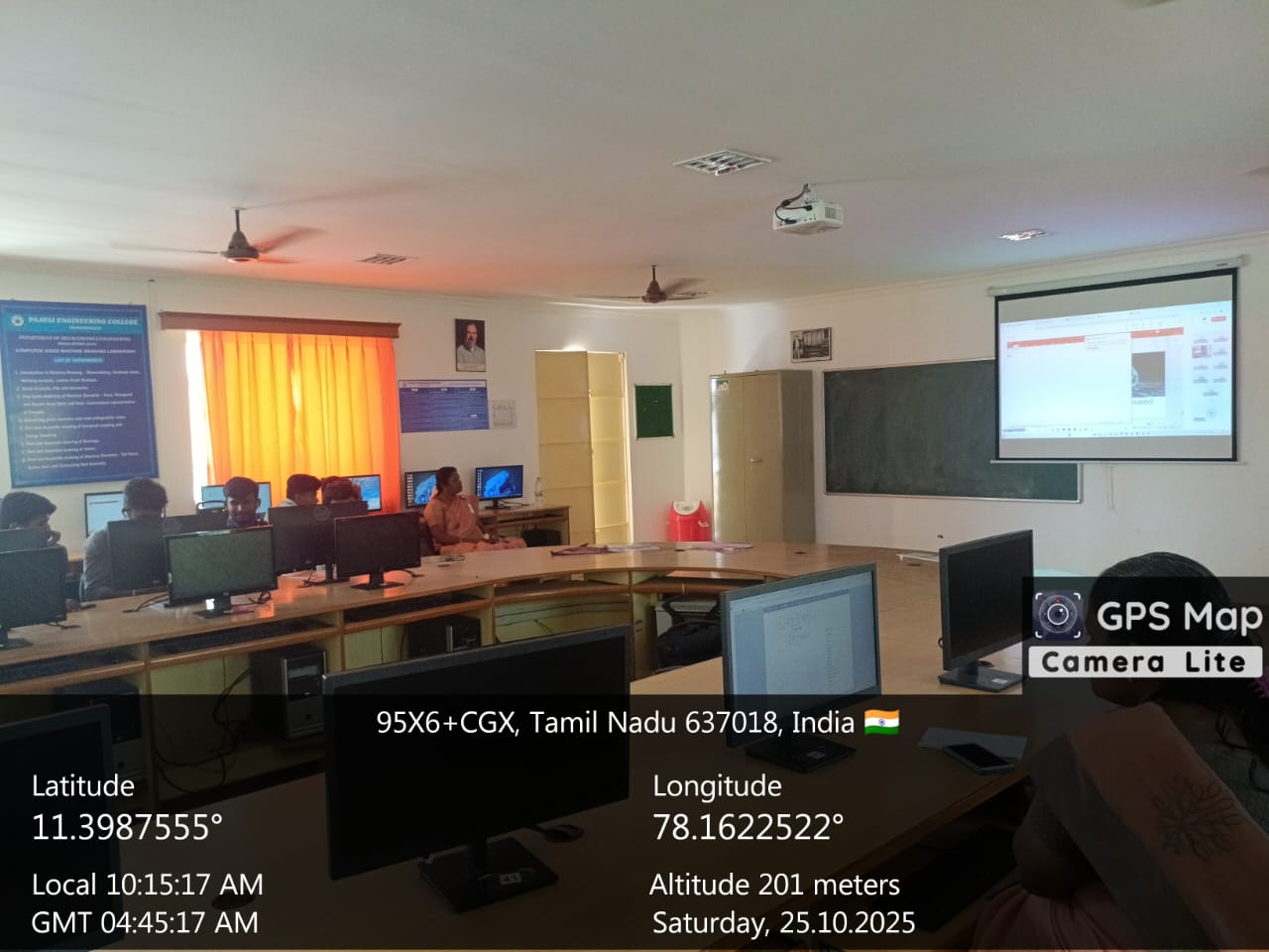 Prof. K. Sharmiladevi (HoD/Civil), Mr. M. Rajkannan (AP/Civil), and Mrs. B. Kiruthika (AP/Civil) coordinated the workshop along with other faculty members. Around 75 participants actively took part in the training.