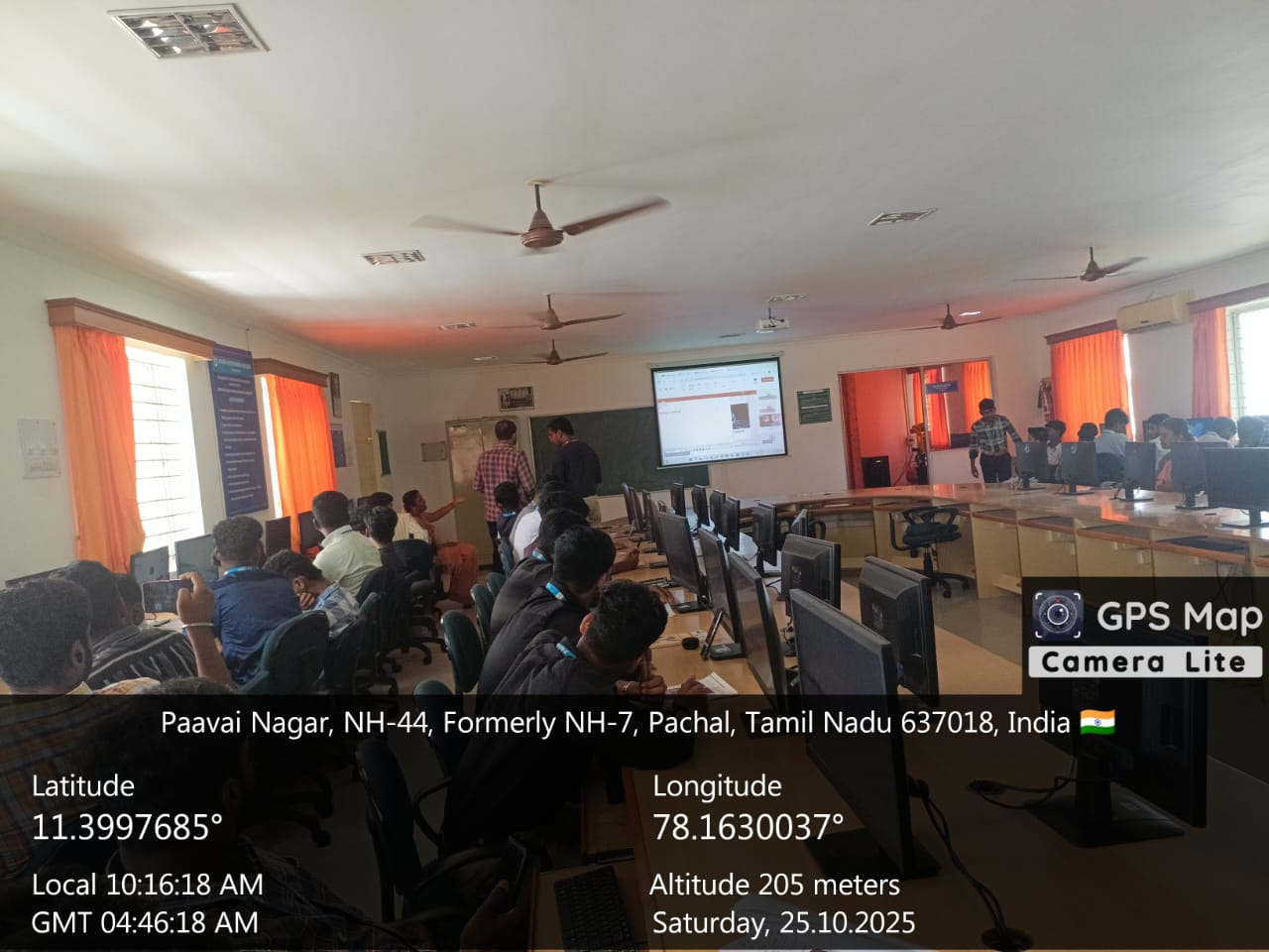 A one-day hands-on training workshop titled “Automated Machine Learning Applications in Civil Industry using Power BI and Google Teachable Machine” was organized by the Department of Civil Engineering in association with the Paavai Civil Engineering Association, Paavai Engineering College (Autonomous) on 25th October 2025.
