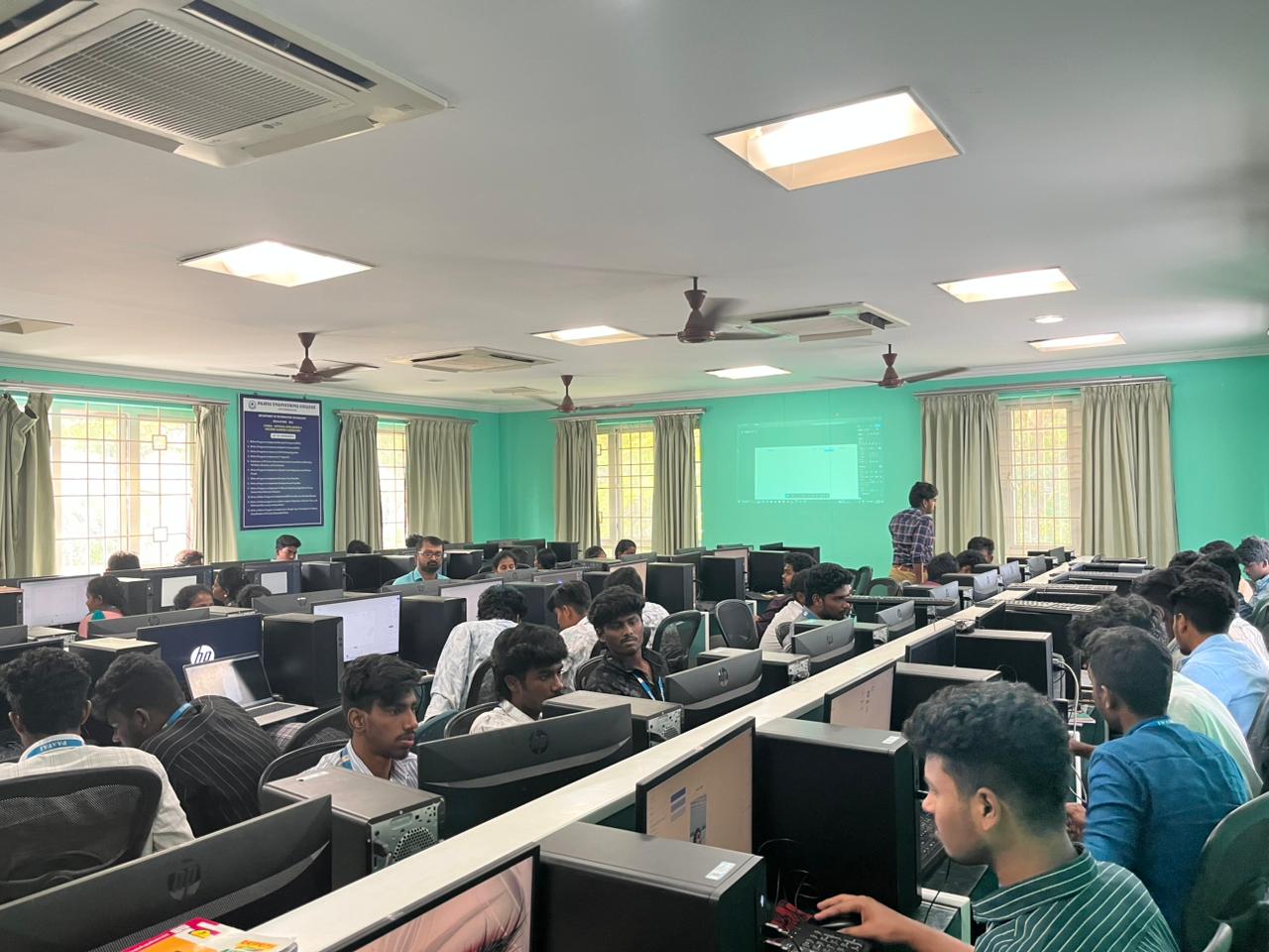 The workshop sessions were conducted by Mr. V. Surendar, UI/UX Designer at Green CAD Tech. He explained the fundamental concepts of User Interface (UI) and User Experience (UX) design, including design principles, wireframing, prototyping, and practical implementation using Figma. The sessions were highly interactive, featuring live demonstrations and hands-on activities that enabled students to apply their learning in real time.