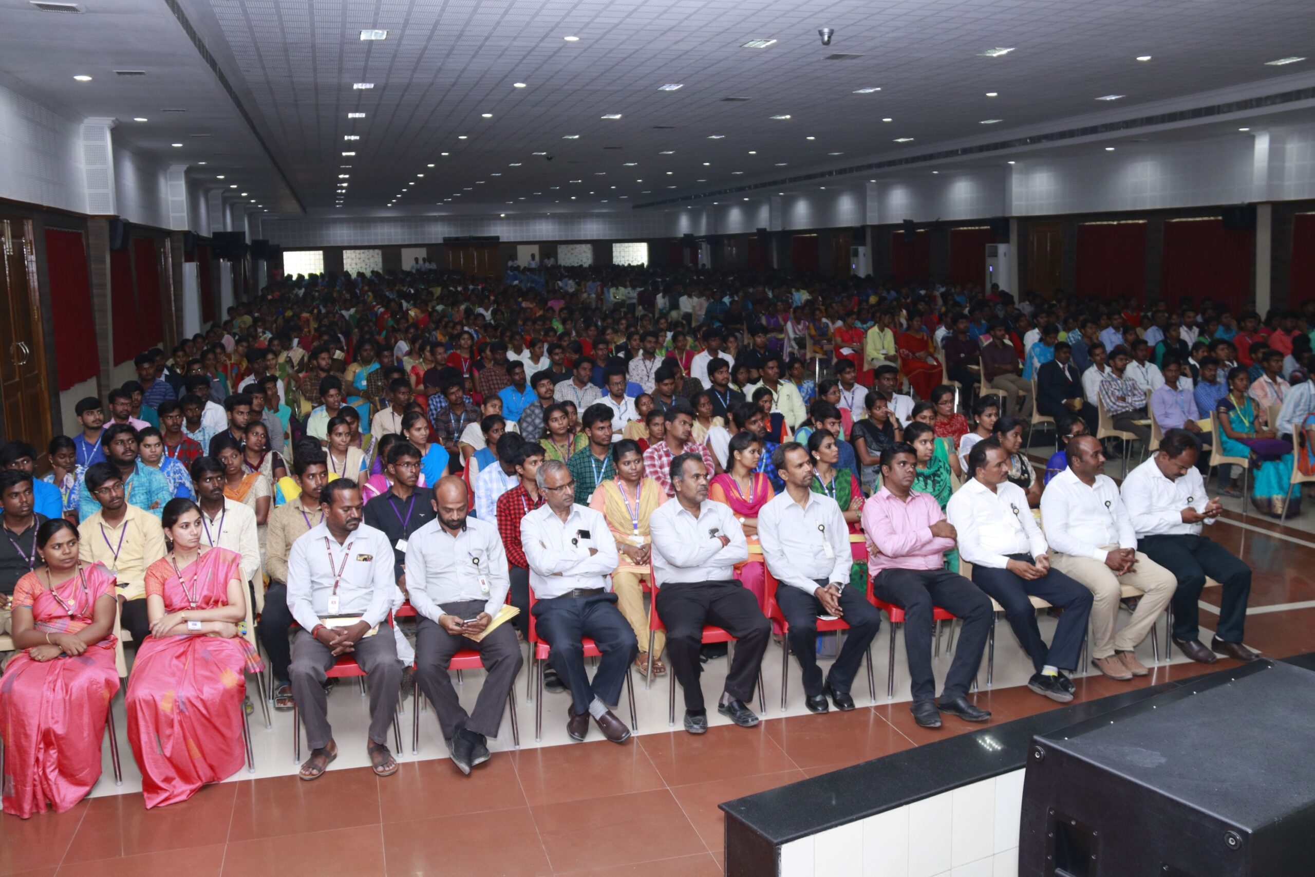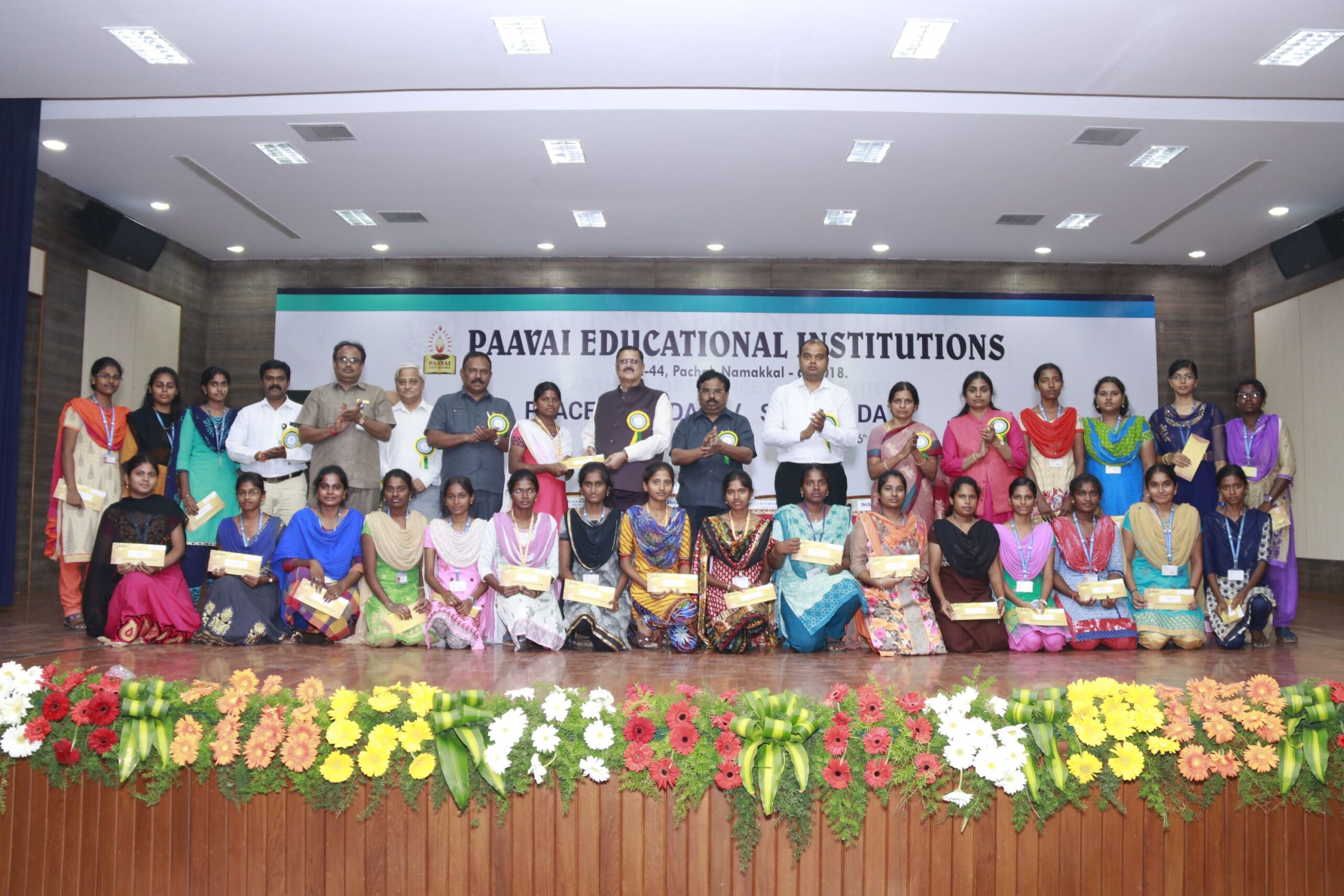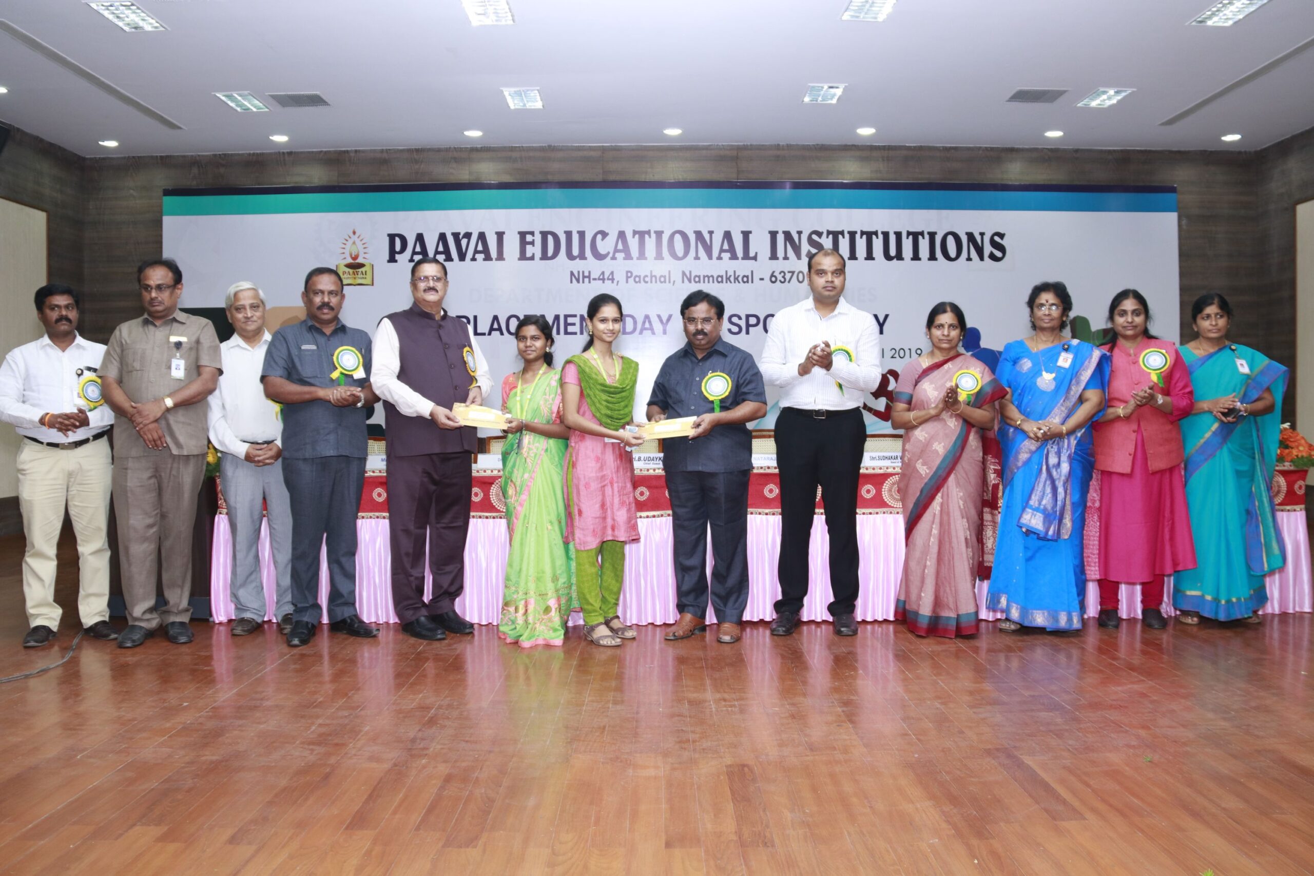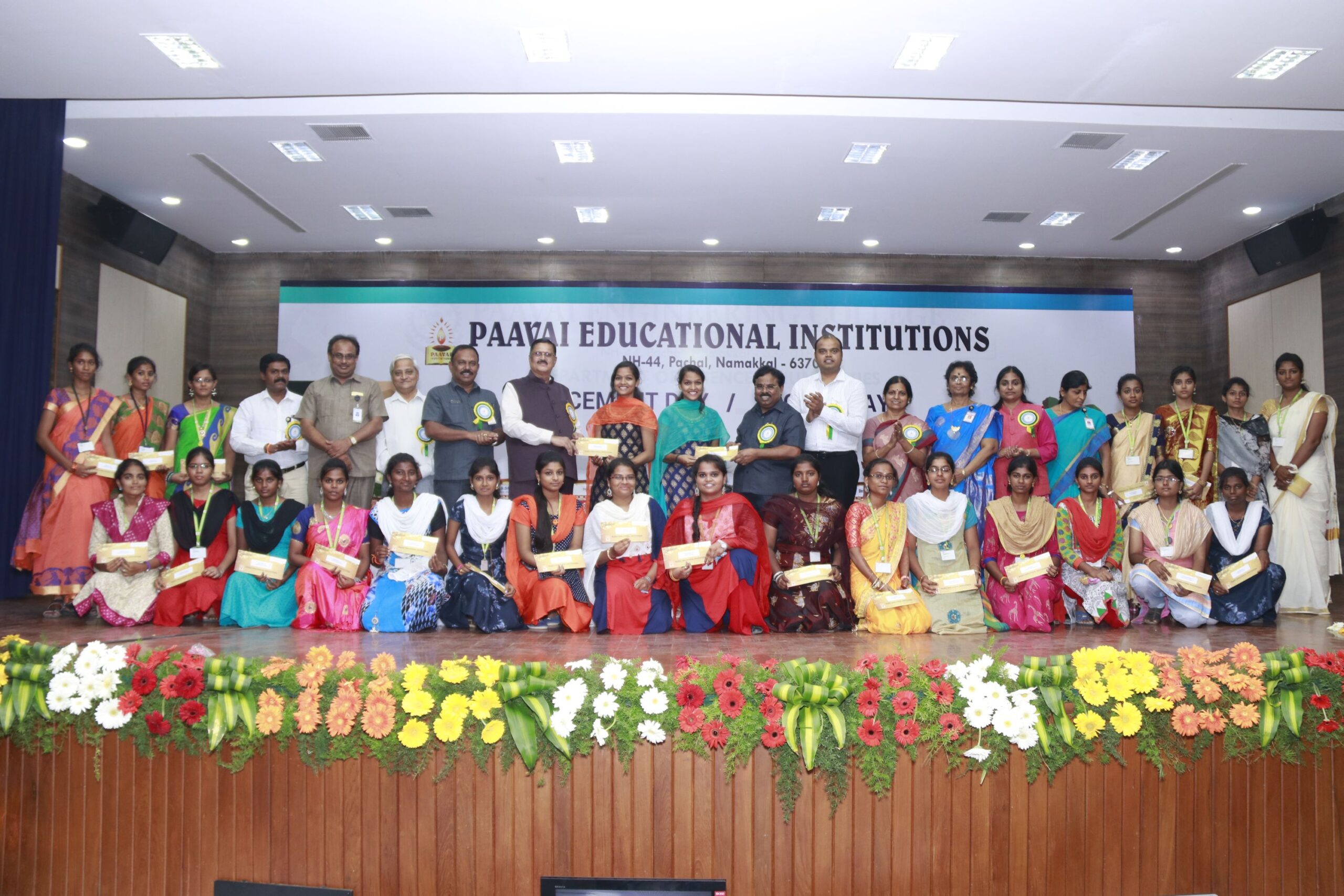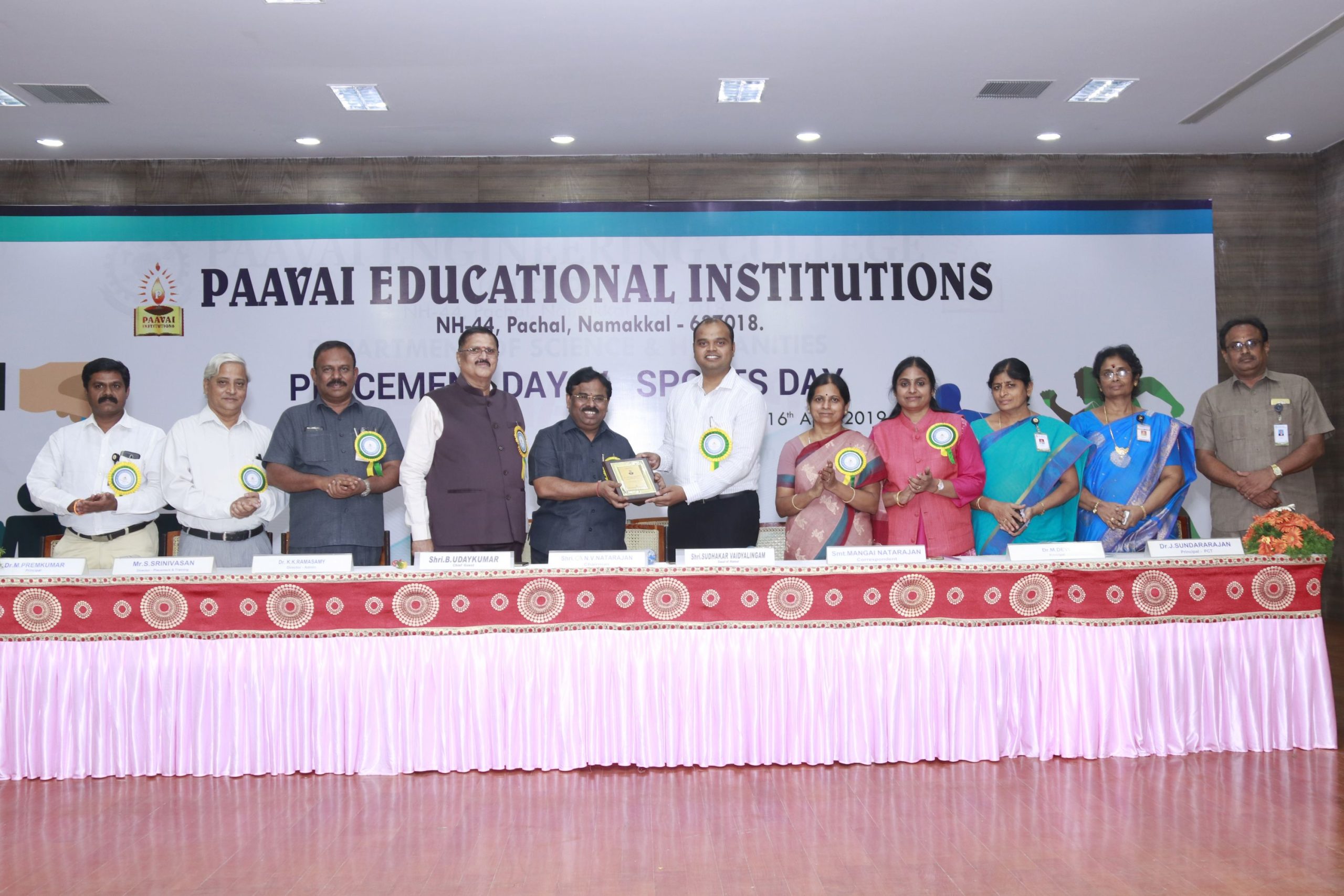 Paavai Educational Institutions’ Placement Day for 2019 passouts was celebrated on 15.04.2019. The Placement Day function was Presided by Shri.CA.N.V.Natarajan, Chairman, Paavai Educational Institutions. Mr. B.P.Udaykumar, Chairman, Confederation of Indian Industry (CII), Salem and Managing Partner, BSP Refineries, Salem was the chief guest and Mr. Shri. Sudhakar Vaidyalingam, Vice Chairman-CII Salem was the guest of honour for the Placement Day celebration at Paavai Institutions. Smt. Mangai Natarajan, Correspondent, Paavai Educational Institutions lighted the Kuthuvilakku. Ms. P.Durga, II Year ECE student of Paavai Engineering College Welcomed the gathering. Shri.CA.N.V.Natarajan, the Chairman of Paavai Institutions delivered the Presidential Address and Smt. Mangai Natarajan, Correspondent, Paavai Educational Institutions felicitated the function and congratulated the students who were offered. Shri.CA.N.V.Natarajan, Chairman, Paavai Educational Institutions honored the Chief guest and Guest of Honor with the mementos. Chief guest Shri B.P.Udaykumar during his speech spoke about how a Placement day is very important for an Engineering student. He claimed that today’s youngsters have the potential to change the future of India with several key factors like Age, Education and Competency to achieve many things in life. He stated that being young, energetic and focused will pave way for success in life. He advised our students to be straightforward and to be sincere in all their efforts and instructed not to compromise in these attributes. He concluded his speech by wishing our students success in life. Guest of Honor, Shri. Sudhakar Vaidyalingam, while addressing the students spoke about how every Paavai student who got placed should become a brand ambassador of Paavai Institutions by working hard, being sincere and truthful to their respective companies. Only this attitude will pave way for great opportunity for the Juniors in Paavai Institutions. This attitude will deem a lot of respect for the students in the companies, which will in turn create a lot of respect for Paavai Institutions. He congratulated the students for their success in life. A total 63 corporate companies visited Paavai Institutions to hire our 2019 passing out students . A total of 1899 students were placed in companies like Tech Mahindra, Infosys, HCL, TCS, L & T, Sanmar, SPIC, TVS, LGB, Nextweb, Poornam Info vision, ABCO Technologies, L&T for the academic year 2018 – 2019. Mrs.S.Mahalakshmi , Training & Placement Officer introduced the Chief Guest & Guest of Honor .Ms. R.Sweshika II Year ECE student of Paavai Engineering College delivered the Vote of thanks and was followed by National Anthem. Director – Administration , Dr.K.K.Ramasamy & Director – Training & Placement , Mr.S.Srinivasan, Principals, Deans, Heads of Various Departments , Professors & Students of Paavai Educations Institutions were a part of this Celebration.