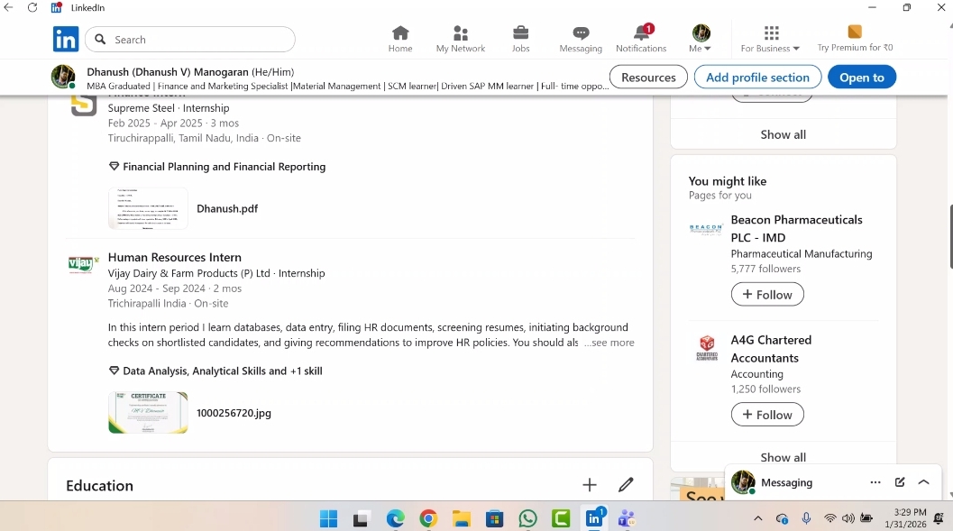 The guest lecture titled “Risk, Resilience and Reinvention” was delivered by Mr. M. V. Dhanush, Admin, Red Chilli Family Restaurant, and a proud alumni of Paavai Engineering College (MBA, Batch 2023–2025). The programme was conducted on 31 January 2026 from 2:30 PM to 3:30 PM through online mode with the objective of enriching students’ academic knowledge through alumni industry interaction. The session focused on contemporary business challenges and emphasized the importance of risk management, adaptability, and continuous reinvention for sustainable organizational growth.