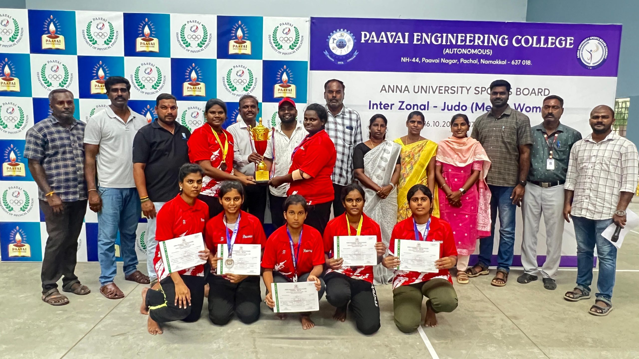 Our College Judo Men & Women team secured First position in the Anna University Interzone Judo (Men & Women) Tournament held on 16 & 17 October 2025 at Paavai Engineering College.