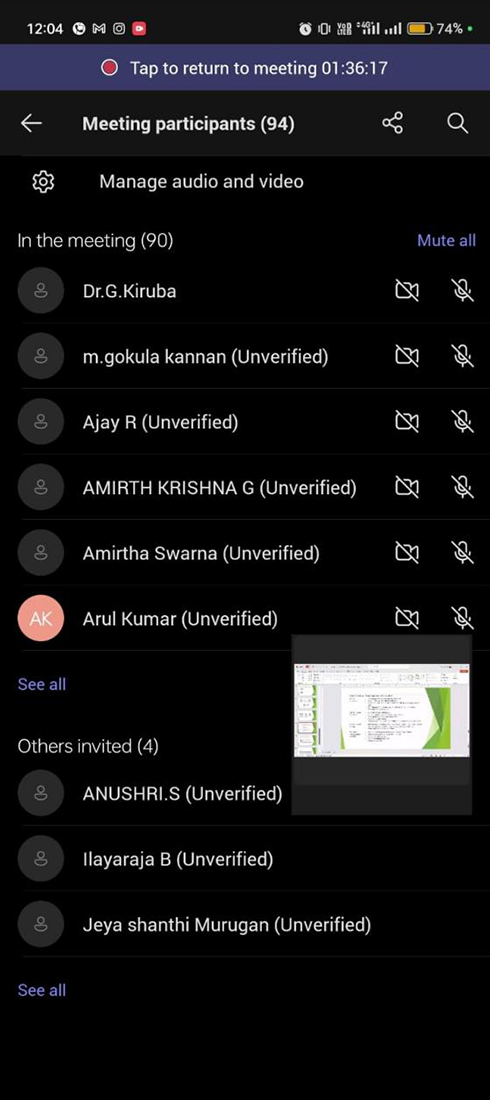 The online guest lecture began with a welcome address and an introduction of the chief guest by Dr. A. Vivekanandhini, Convenor and Head of the Department of Agricultural Engineering at Paavai Engineering College. The session continued with the talk by the resource speaker, who provided a clear explanation of the history behind lean startups and business ideas related to various dairy products and other agriculture-related schemes and subsidies. She also addressed student queries and provided information on starting a business. Additionally, she encouraged students to undertake simple projects involving innovations such as automatic weather control, soil and water conservation, rainwater harvesting, hydroponics, and agricultural machinery rental, hiring, and sales.