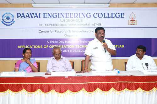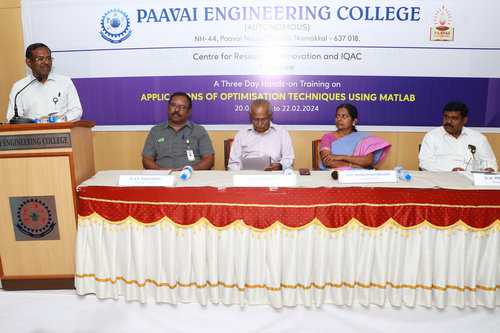 The Department Centre for Research & Innovation and IQAC are organized “A Three Day Hands-on Training on Applications of Optimization Techniques uses MATLAB” on 20.02.2024 – 22.02.2024. Dr.M.Premkumar, the Principal, presided over the function and insisted on the importance of optimization techniques application and how to utilize MATLAB for achieving the above in research work and real-time problems.