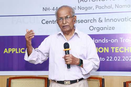 The guest speaker Dr.V.Ganapathy, an Eminent Professor, from Chennai. He has highlighted the need and importance of optimization techniques using MATLAB for solving engineering problems. He demonstrated some of the real-time engineering problems and explained how to utilize the various tools in the MATLB to solve engineering problems. In his hands–on- training the participants practiced various problems like Fuzzy, ANN, ACO, etc.