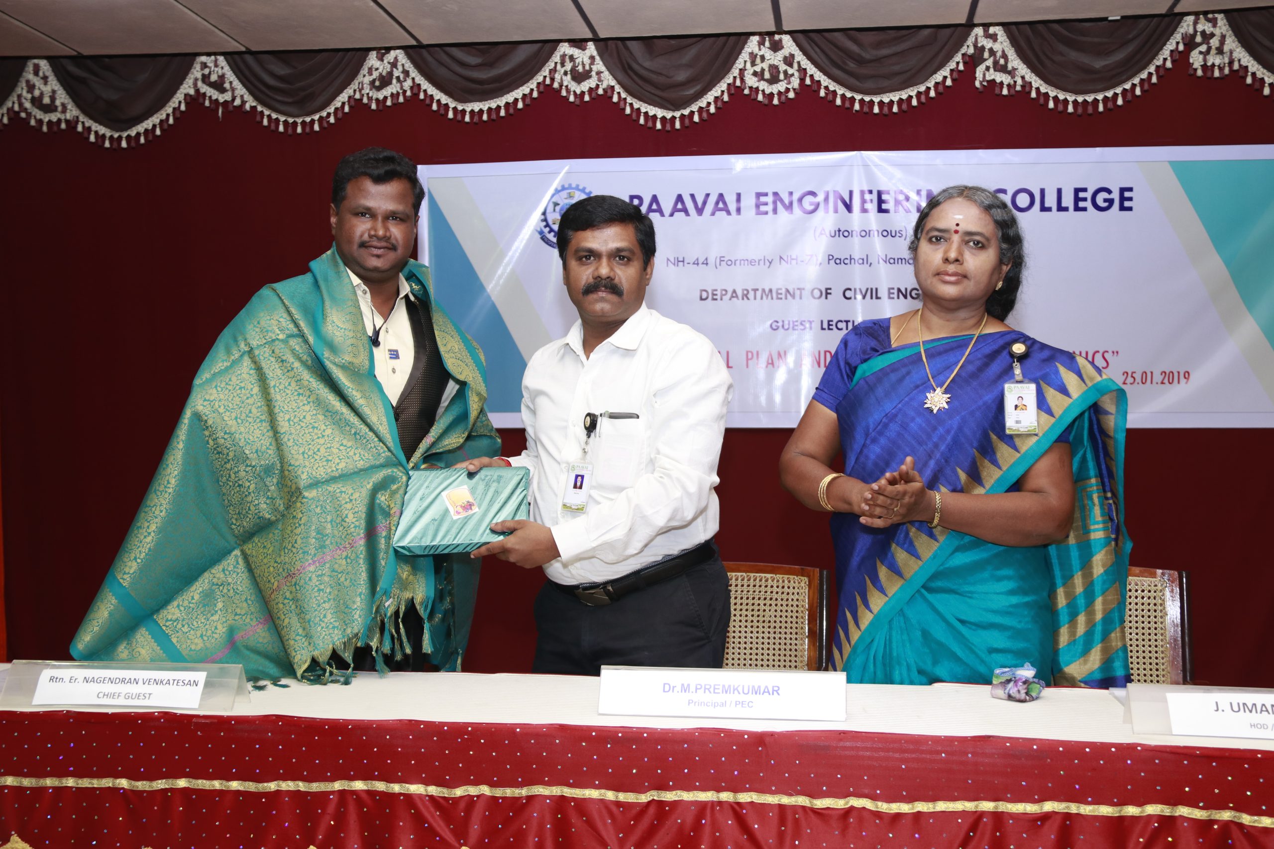 A One day Guest Lecture on the title “Approval Plan and Blue Print Reading Technics” was organized by Department of Civil Engineering, Paavai Engineering College on 25.01.2019 at Kalam’s Chamber. Chief Guest – Rtn. Er. Nagendran Venkatesan Structural Engineer, Vasthu Consultant, CEO of Civil Engineering Academy, Salem. Mr.K.Mohan, Third year student, Paavai Engineering College welcomed the gathering, Ms.S.Shanthini, Final year student Paavai Engineering College gave a brief introduction about the chief guest. Our Honorable Principal / Paavai Engineering College, Dr.M.Premkumar gave his valuable presidential address about the field of civil engineering and the essentiality of quality and innovations in civil field. Our Respected Head of Department Mrs.J.Umanambi, honored the Chief Guest. Er. Nagendran Venkatesan spoke elaborately about the approval plan methods and the skills about latest planning techniques. The discussion was about the importance of National Building Codes and updated 3D plans. A good number of Professors actively participated in the program and were benefited. The queries from the students and faculties were effectively replied by the chief guest. Finally the vote of thanks was delivered by Ms.A. Ranjitha, Final Year student and our Guest lecture program was successfully concluded.