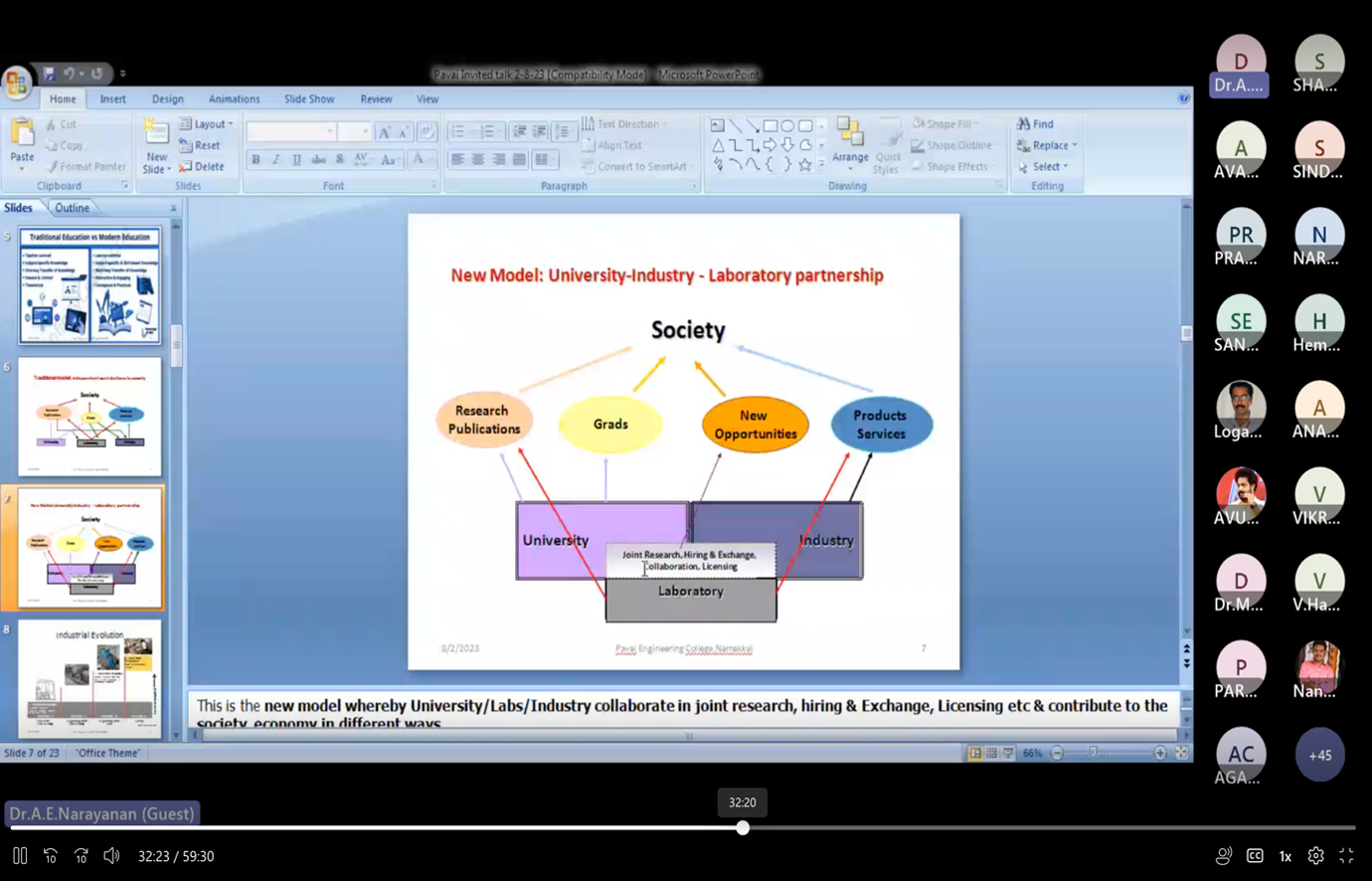 Dr.M.Sudha, Professor and Head, ECE, thanked the resource speaker. Dr.R.Mohana Priya, ASP, ECE , Association Coordinator, Mr.G.Nandha Kumar,AP,ECE were the coordinators. The faculty members of ECE and around 60 students were present in the meeting. As per the feedback received from the students, it was useful for the students to know the developments in various fields of science and technology.