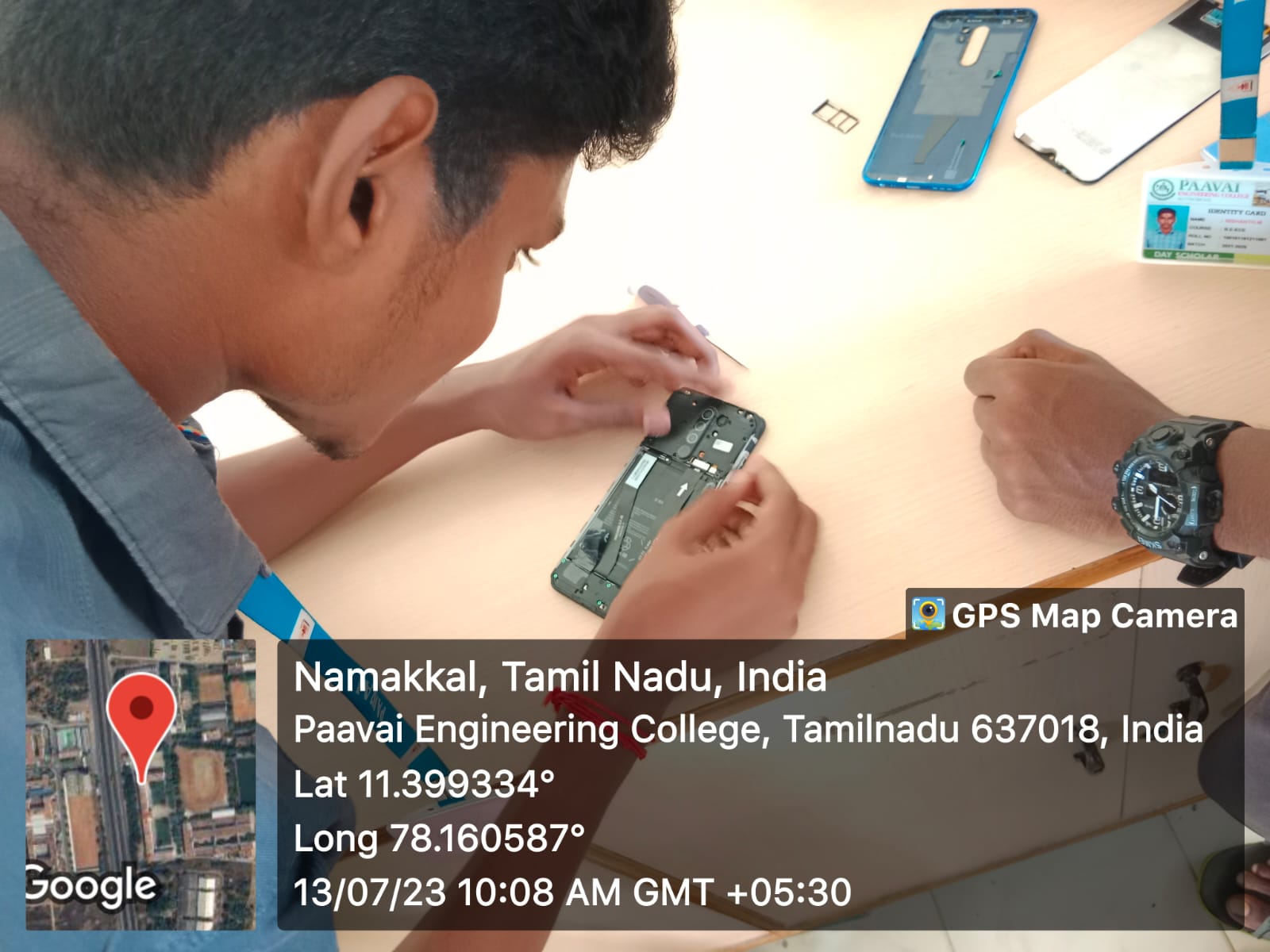 The Department of Electronics and Communication Engineering in association with The Institution of Engineers (India), Salem local Centre and New Technology Mobile Service & Training Institute organized a Hands- on Training – “Advanced Technologies for Smart Phone Services and Troubleshooting” from 12.07.2023 to 13.07.2023. It was aimed at disseminating knowledge to students about the role of Electronics engineers in fault finding troubleshooting in smartphone. The two days programme was presided by Dr.K.K.Ramasamy, Director-Admin, Paavai Institutions. In his presidential address, he motivated our students to emphasis on smartphone working and the importance of troubleshooting. The welcome address was given by Dr. M. Sudha Professor&Head,ECE, Ms.K.Prasanna Mery Assistant Professor,ECE introduced the resource speaker Mr.P.Rajesh Kumar Chief Trainer& Service Engineer, New Technology Mobile Service & Training Institute, Coimbatore.