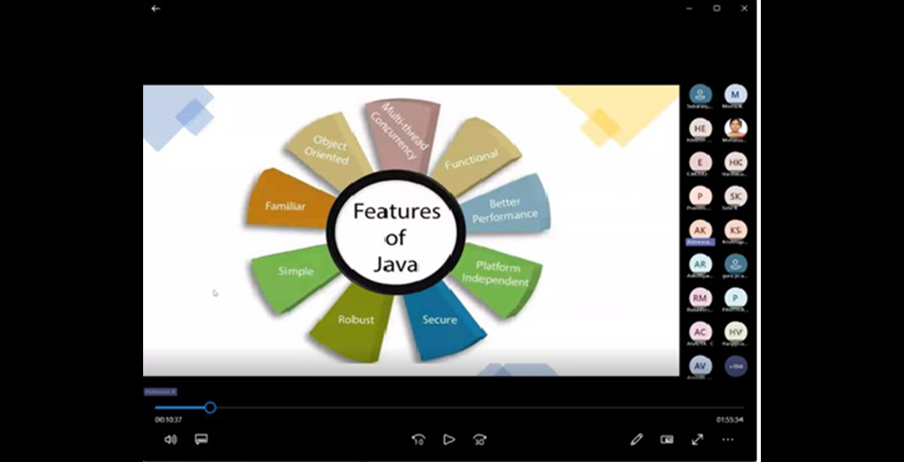 Mr.S.Satheeshkumar, AP/ECE and Mr.R.Logarasu AP(Sr.Grade)/ECE were the faculty coordinators. Dr.R.MohanaPriya, HoD, ECE, faculty members of ECE and around 160 students attended the online Guest Lecture. Student’s feedback indicated that it was very helpful for their upcoming placement drives and it has made them feel free to study Java in an easier way. Finally, third-year ECE student M.Sivaranjana gave the vote of thanks