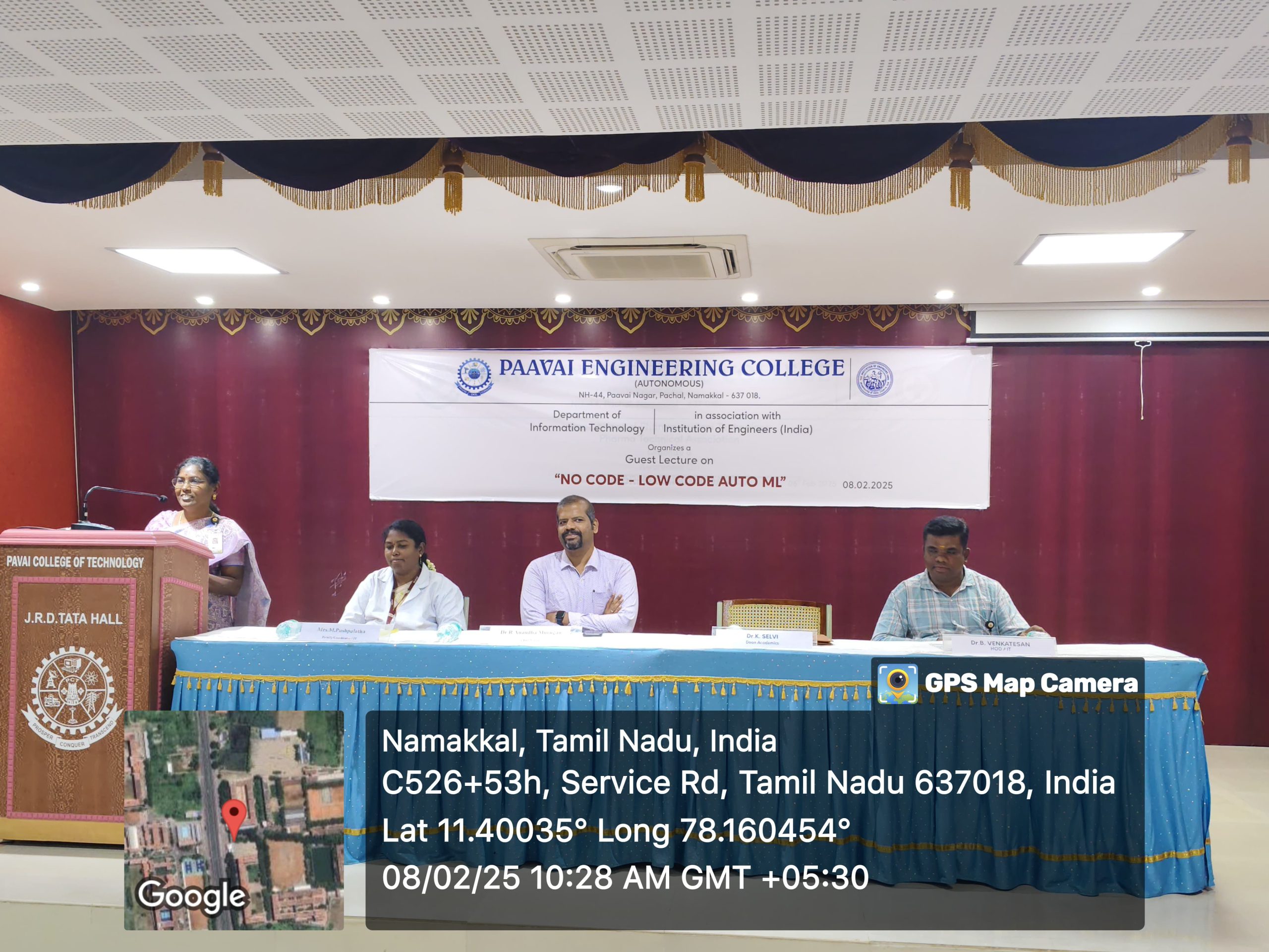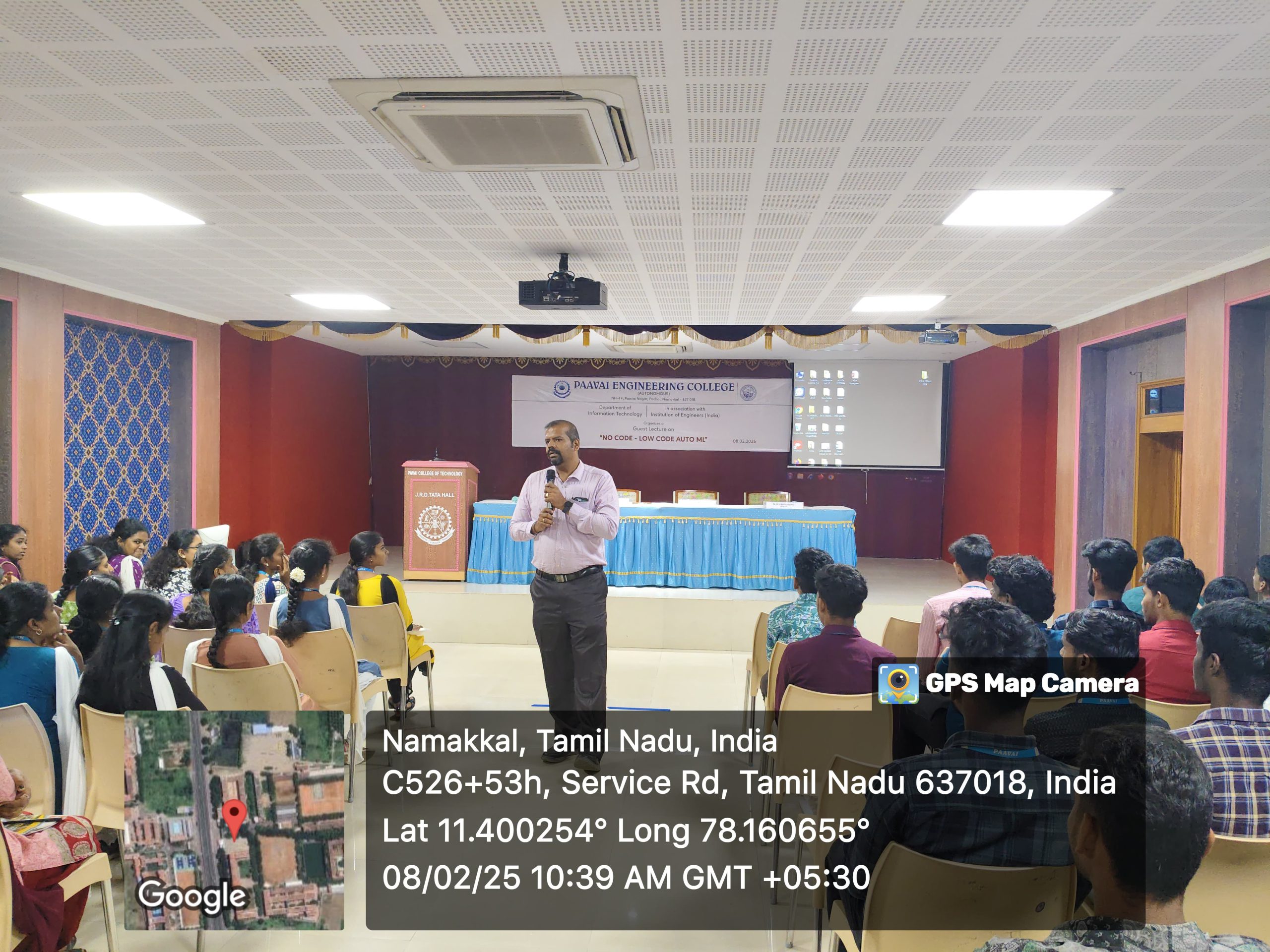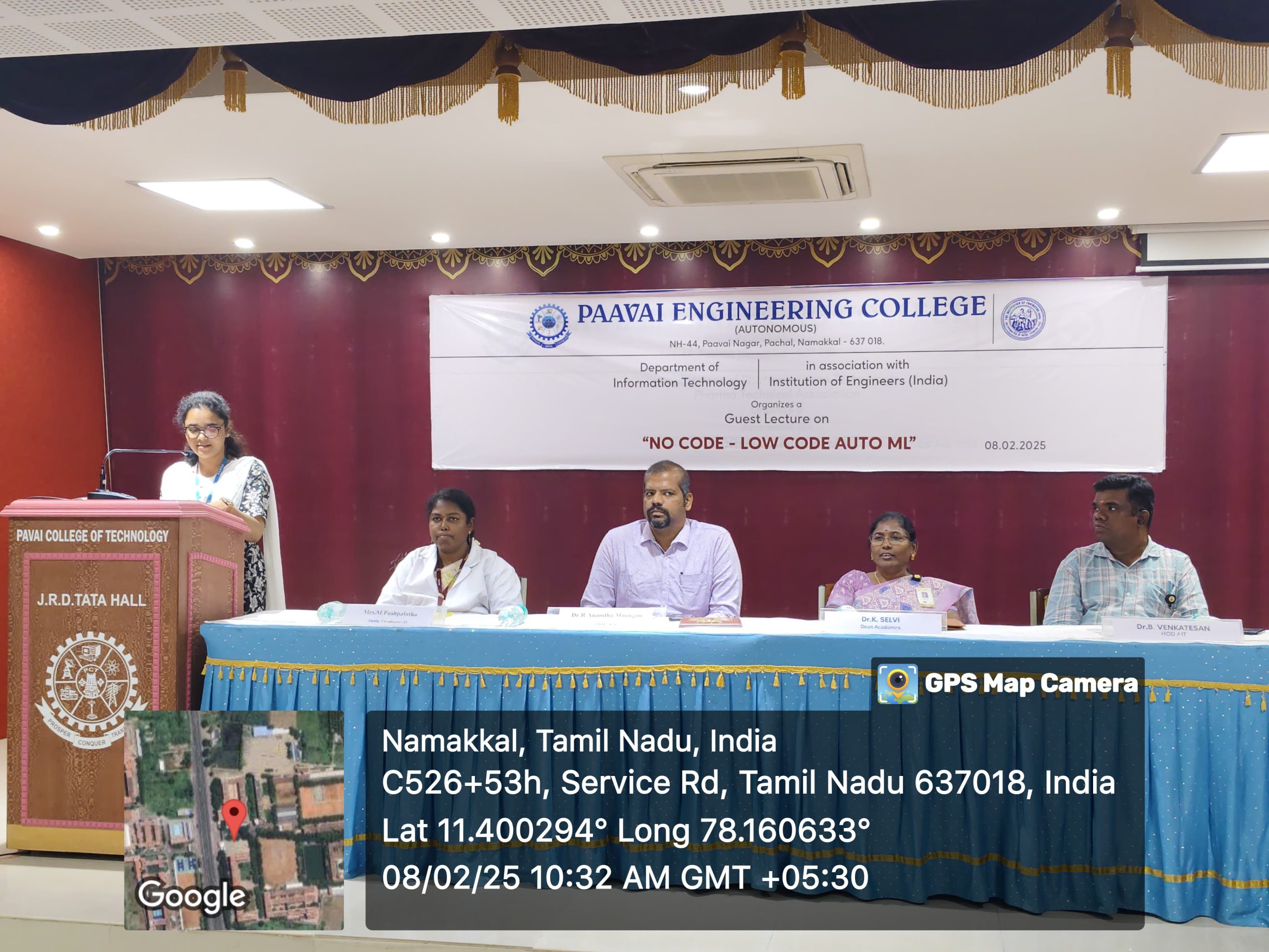 The Department of Information Technology in association with the Institution of Engineers (India) organized a guest lecture on “No Code – Low Code Auto ML” on 8th February 2025 at JRD Tata Hall. The presidential address was delivered by Dr.K.Selvi, Dean of Academics. She emphasized the significance of the latest technologies and motivated the students to excel in order to seize career growth opportunities. Dr.B.Venkatesan, Head of the Department of Information Technology, facilitated the event. Mr. K. Vishal Kowsik, a second-year IT student, welcomed the gathering. Ms. J. Aafiya Bareen, a third-year IT student, introduced the resource speaker.