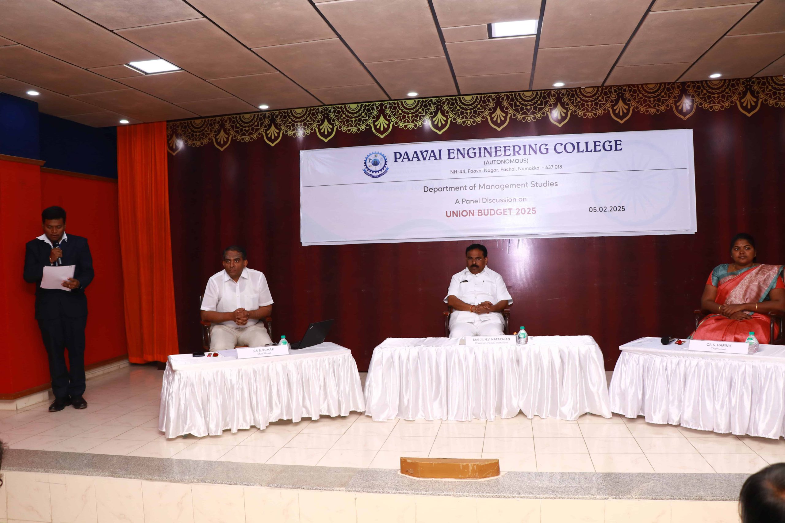 The Department of Management Studies at Paavai Engineering College (Autonomous) organized a discussion on the Union Budget 2025 on February 5, 2025, from 2:30 p.m. to 4:30 p.m. at Kalam Chamber.