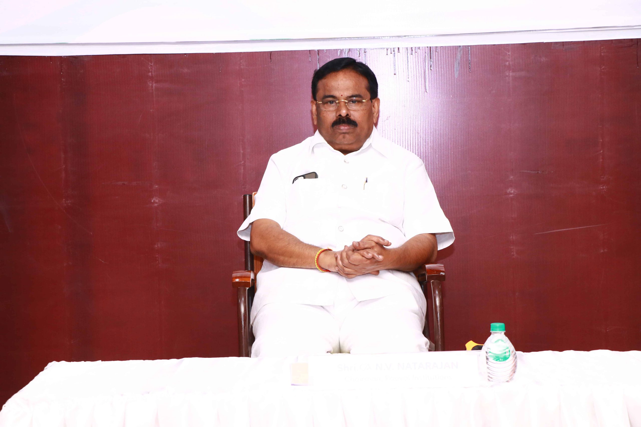 The event commenced with a welcome address by Mr. S. R. Sanjaynath, a first-year MBA student. Shri CA. N. V. Natarajan, Chairman of Paavai Educational Institutions, served as the moderator for the discussion, providing an insightful overview of the Union Budget. He introduced the speakers to the audience and set the stage for an engaging session.