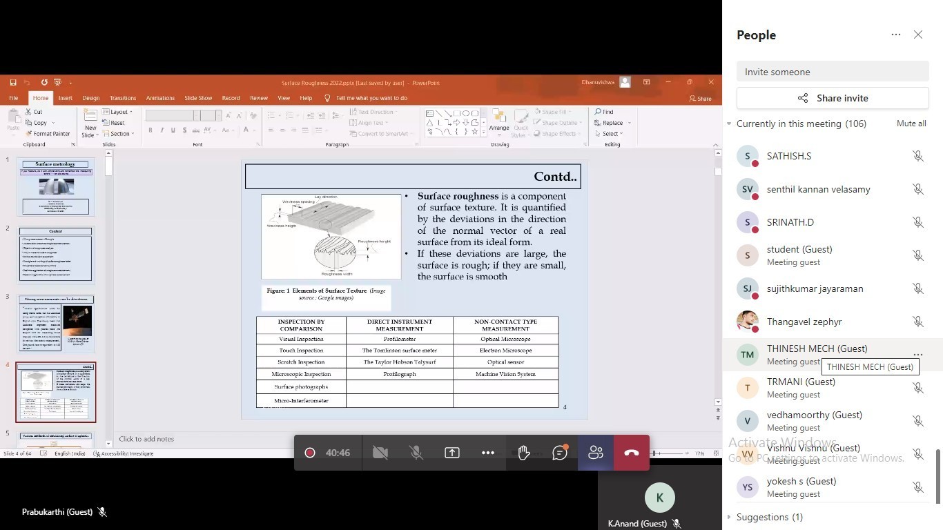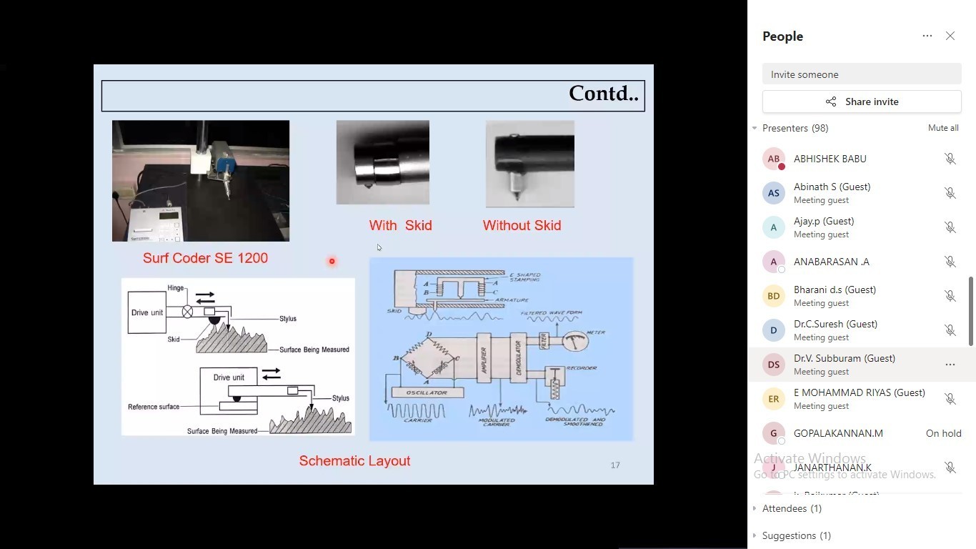The Department of Mechanical Engineering in association with the Resource club an online guest lecture titled “Surface Metrology” was conducted on 18.08.2022.The objective of the lecture is to provide knowledge on measuring techniques and its applications in various areas.Welcome address was given by S.Sivalingam, from Final Year Mechanical. Dr.A.Prabukarthi, Assistant Professor, Department of Mechanical, PSG College of Technology, Coimbatore was the resource speaker T.Saranraj, from third year Mechanical introduced the resource speaker.