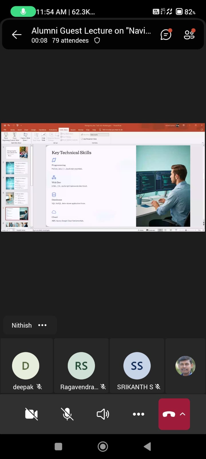 Mr. B. Nithish Kumar highlighted how technologies like AI, Cloud Computing, Machine Learning, and Cyber security are driving demand in the IT sector. He explained about Opportunities for freelance work in the IT industry are increasing due to platform-based economies and the need for specialized skills. Also emphasized obtaining industry-recognized certifications to remain competitive. IT professionals should engage in continuous learning via online platforms like Coursera, Udemy, and LinkedIn Learning to stay updated on new technologies and methodologies. Finding a mentor in the IT industry can provide direction for career growth, project management, and professional development. Stay informed on industry trends by reading IT blogs, listening to podcasts, and following thought leaders. There were inquiries on how to keep up with rapid technological changes and tips for working effectively in a remote setup. Around 80 students participated in the guest lecture. Queries were asked and it was clarified by the resource speakers.