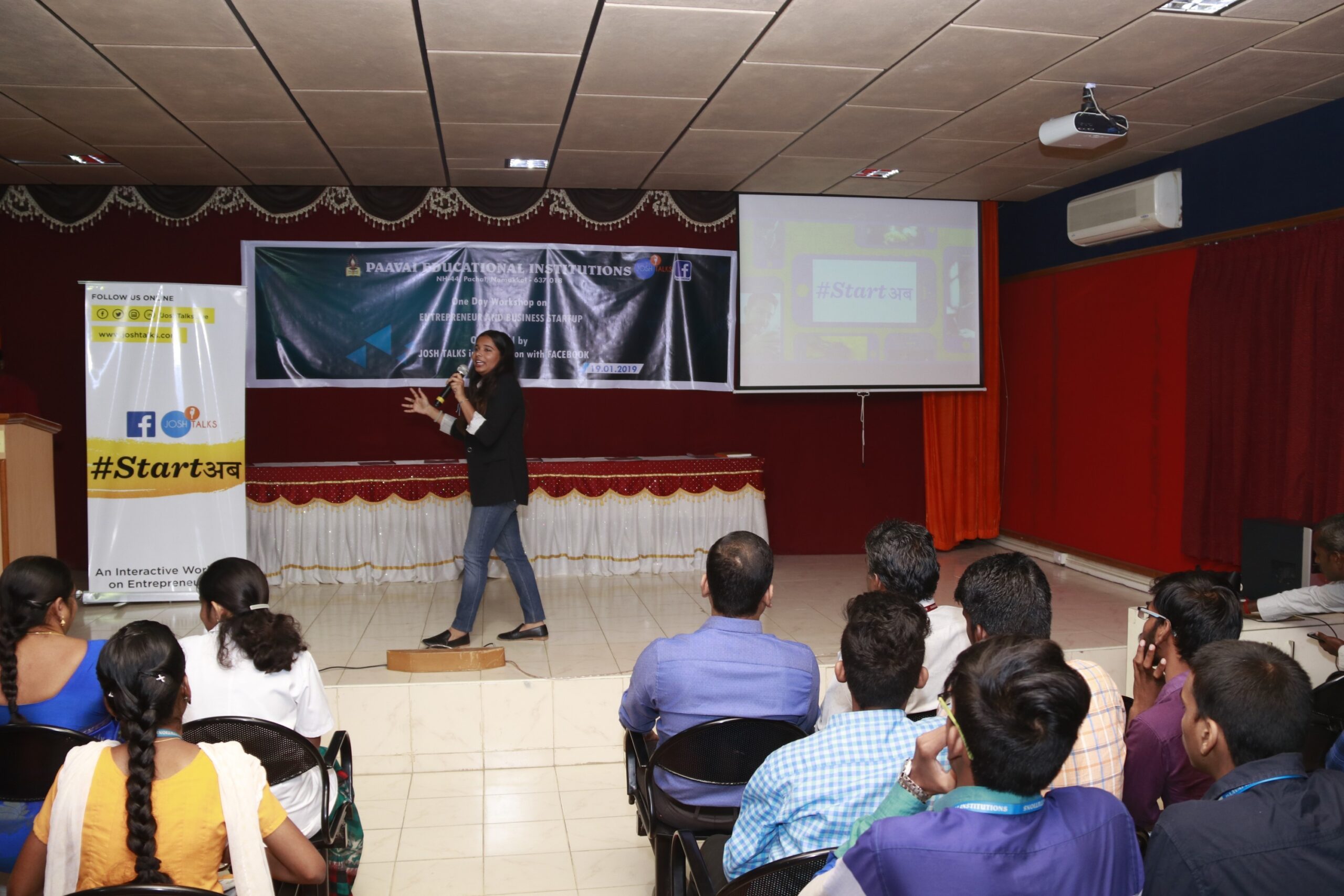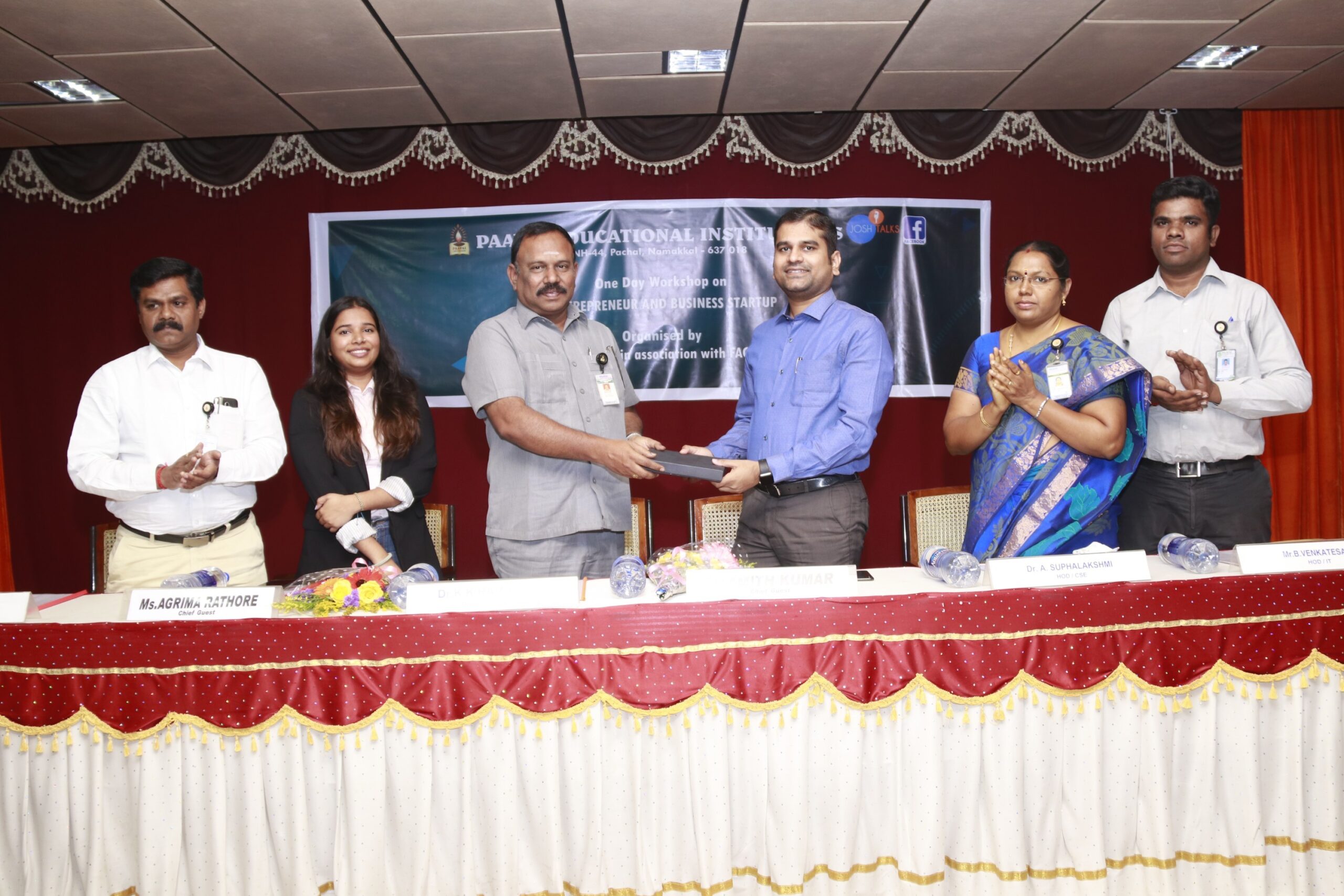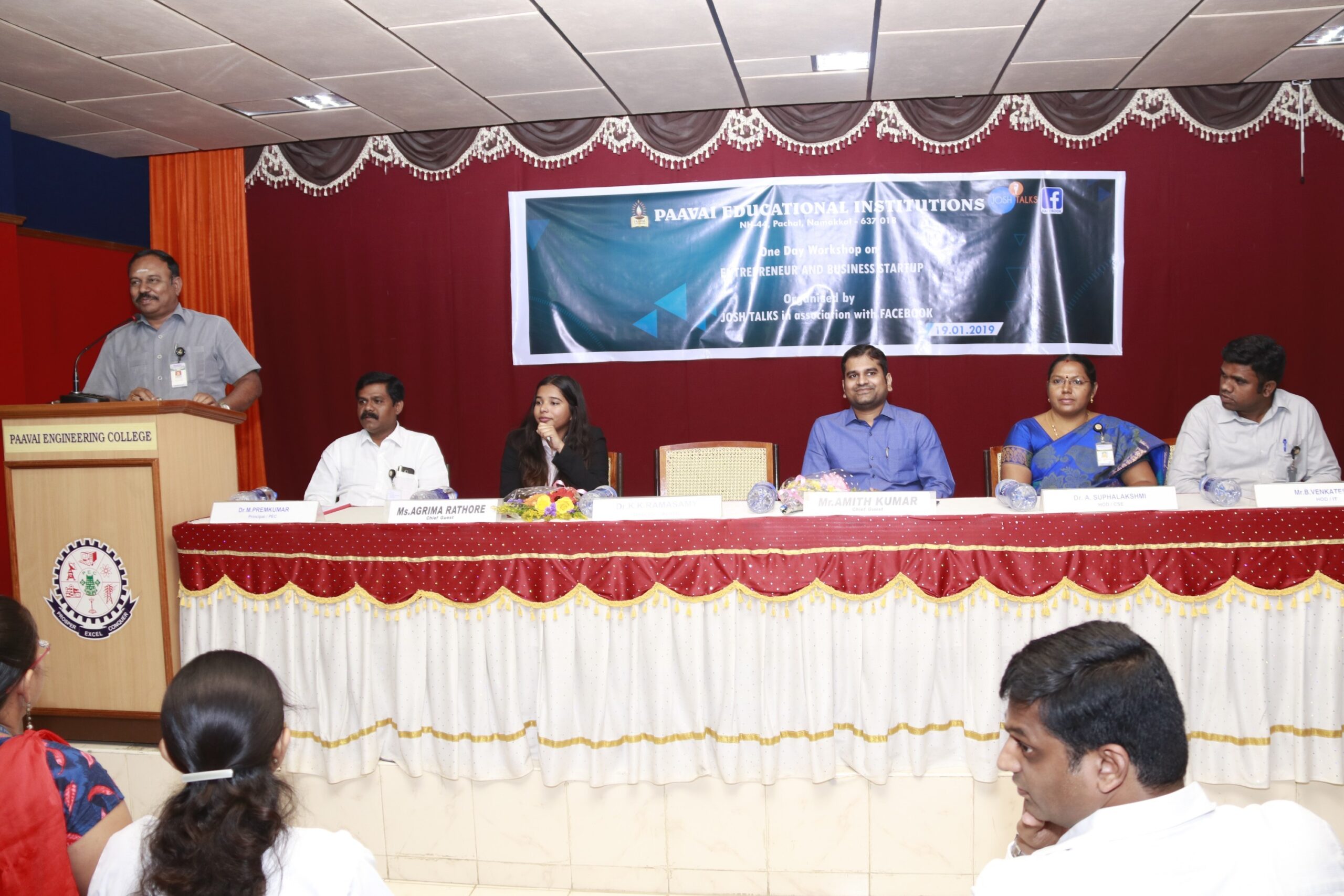 The departments of Information Technology and Computer Science and Engineering organized a one day workshop on “ENTREPRENEUR AND BUSINESS STARTUP” in association with Josh Talks and Facebook on 19.01.2019 in Kalam’s Chamber at Paavai Engineering College. The function started with the prayer song. Dr.K.K.Ramasamy, Directior-Administration, presided over the function. In his presidential address, he asked the students how many of them would become an entrepreneur after graduation and also motivated the students to start their own businesses. Mr.Amith Kumar, Co-Founder, Servercake, India and Mrs.Agrima Rathore, Campaign Manager, Josh Talks were the chief guests. In the session , Mr.Amith Kumar gave a brief introduction about the salient features of entrepreneurship and the basic qualities required for this task. He elaborated on giving guidelines to start and run a business successfully. He suggested that a good entrepreneur has to be determined in marketing. He highlighted the art of buying and selling by creating curiosity among people towards products. He listed out the government compliances for young graduates to start a business. Mrs Agrima Rathore, advised the students that they need to realize their self and they have to decide what they wish to become after their graduation. In her presentation, she visualized how the Facebook and Instagram were helpful to launch startups. At the end of the session feedbacks were given. The students Rishi Rahul, III year IT and Soundarya Final year CSE of Paavai Engineering College, introduced the chief guests. The valedictory function held at 4.30pm at Kalam’s Chamber. Mrs.Shanmika gave the vote of thanks.