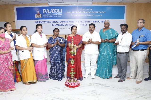The Faculty Development Department organized a four-day Orientation Programme for the recently recruited faculty members to make them familiar with the institutional practices and the instructional strategies of teaching and learning, because teachers are considered to be the pillars of Paavai. The Orientation Programme was held from 29.11.2023 to 02.12.2023 at Smart Hall. 31 faculty members from Paavai Educational Institutions attended the Orientation Programme.